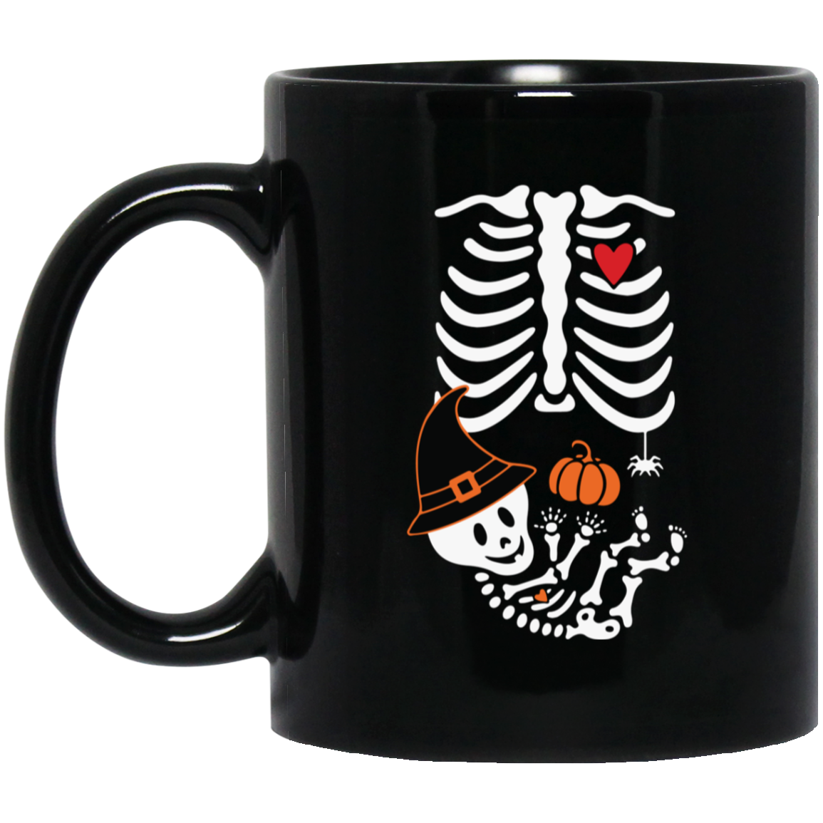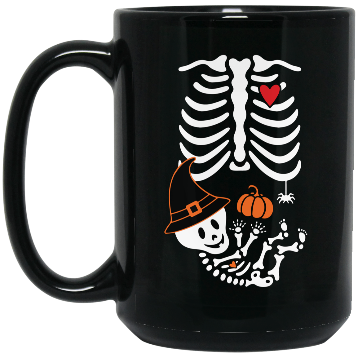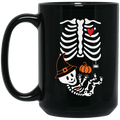 Skeleton Play Pumpkin, Happy Halloween, Lungs Bones, Skeleton Wear Witch Hat Black Mug