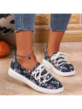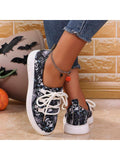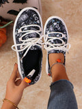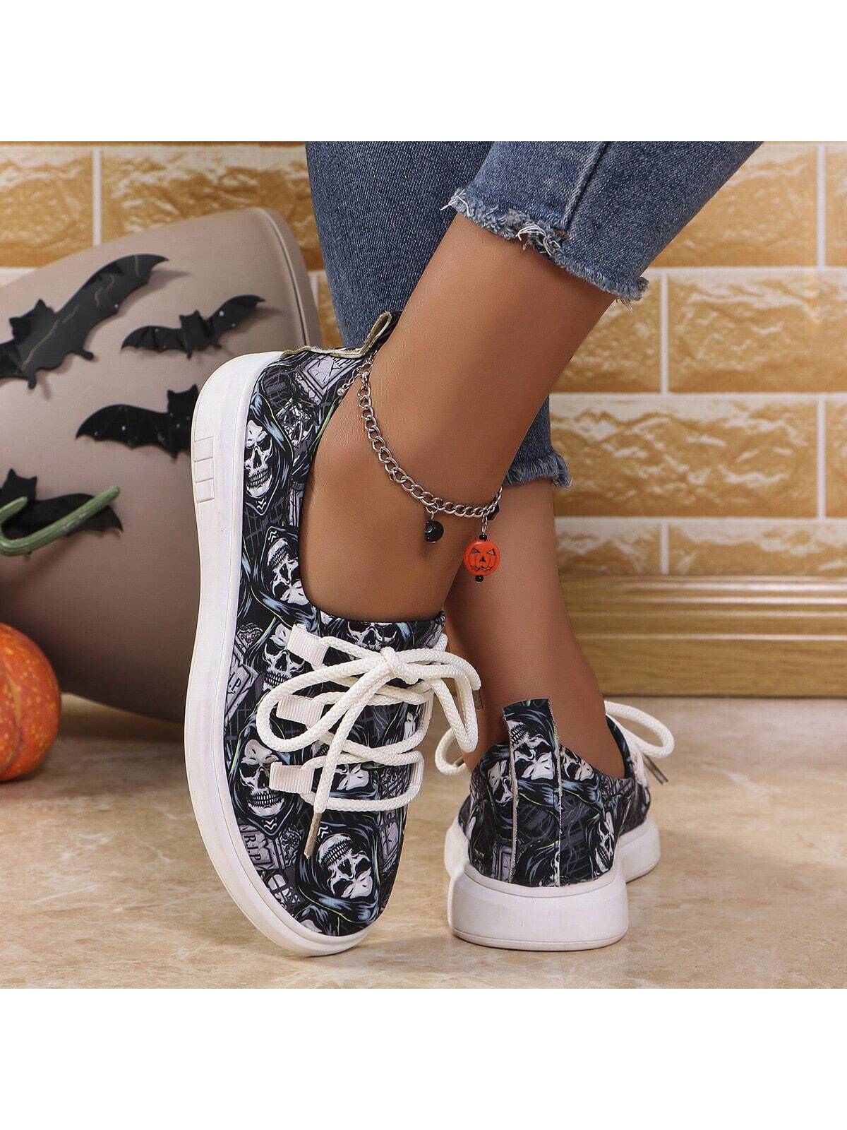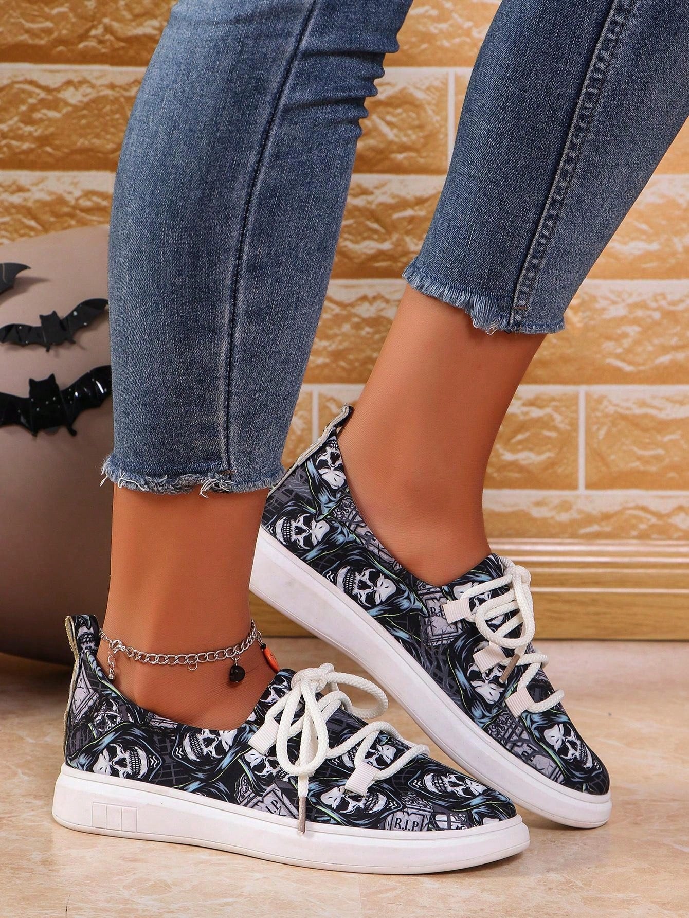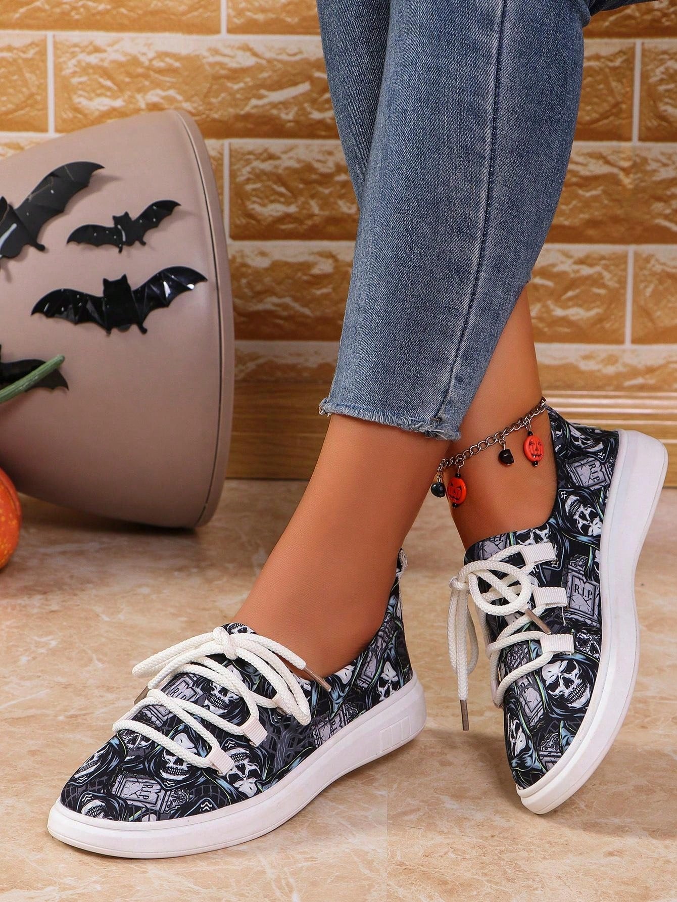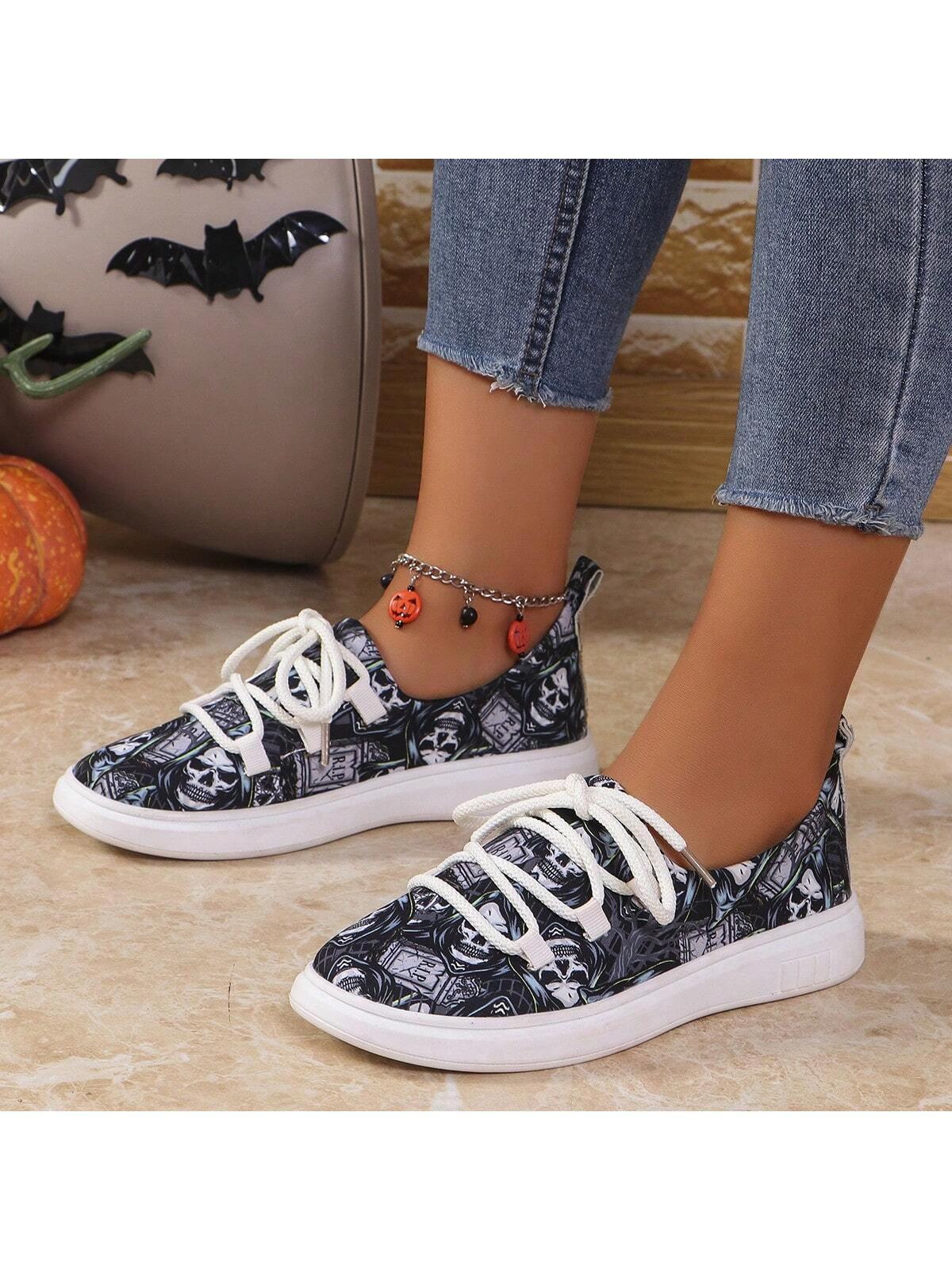 Skull Print Lace-Up Sneakers: Spooky Style for Halloween 2024