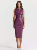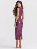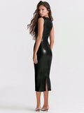 Slay the Night in Style: Solid Faux Leather Maxi Dress for Women