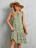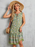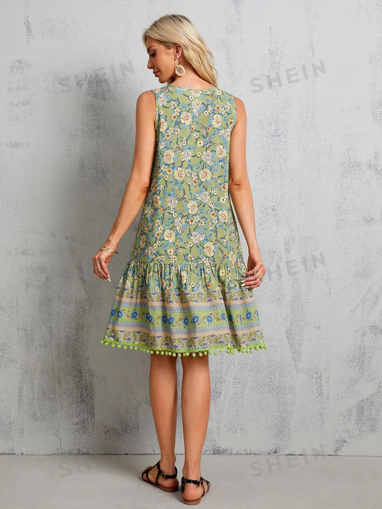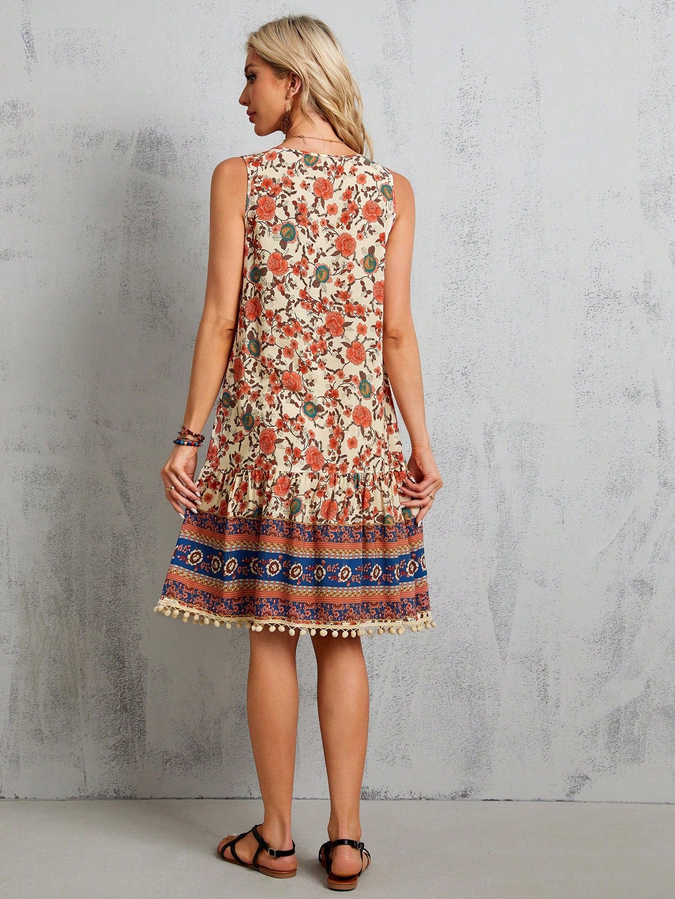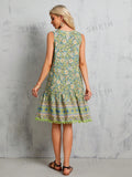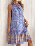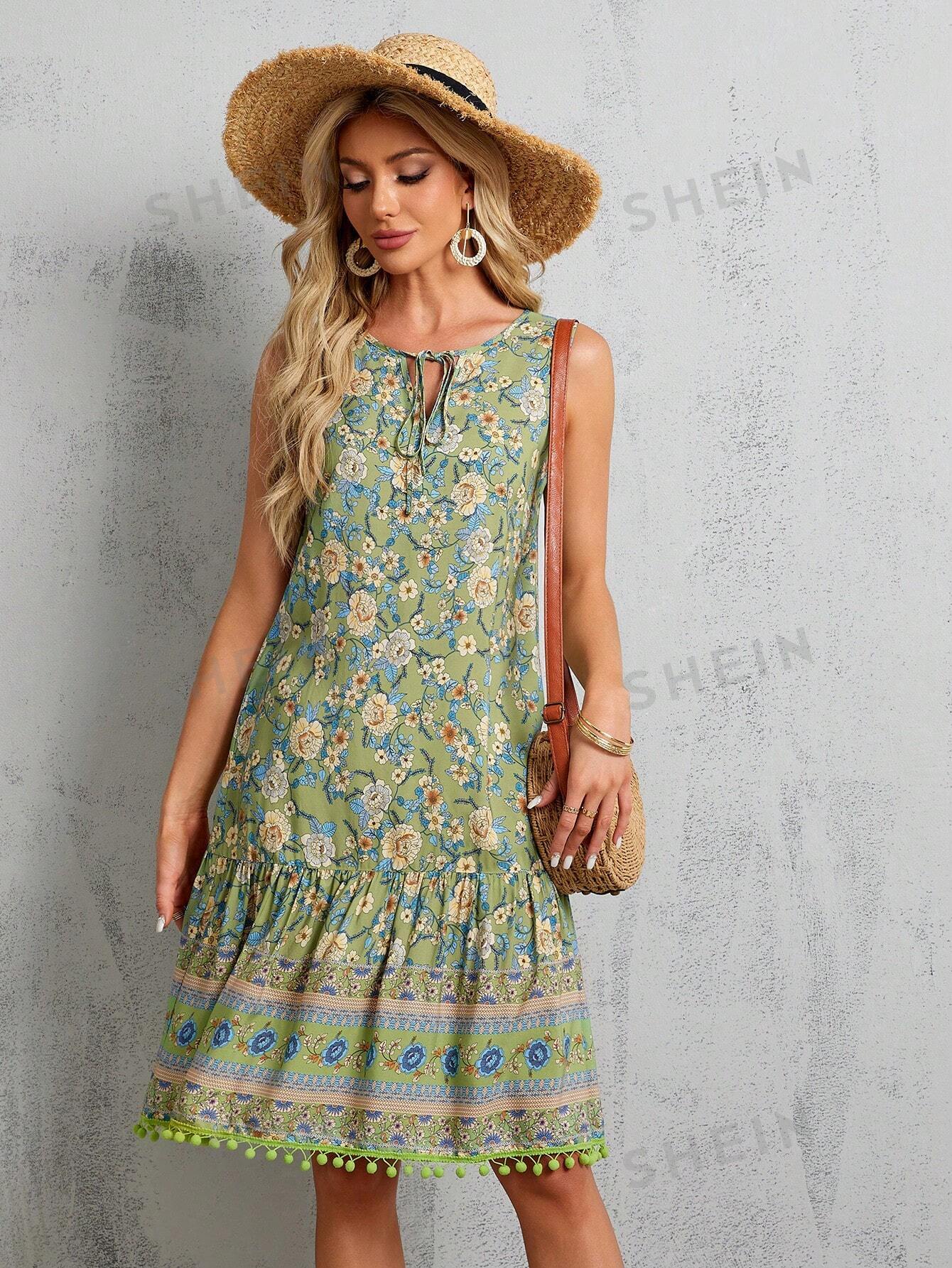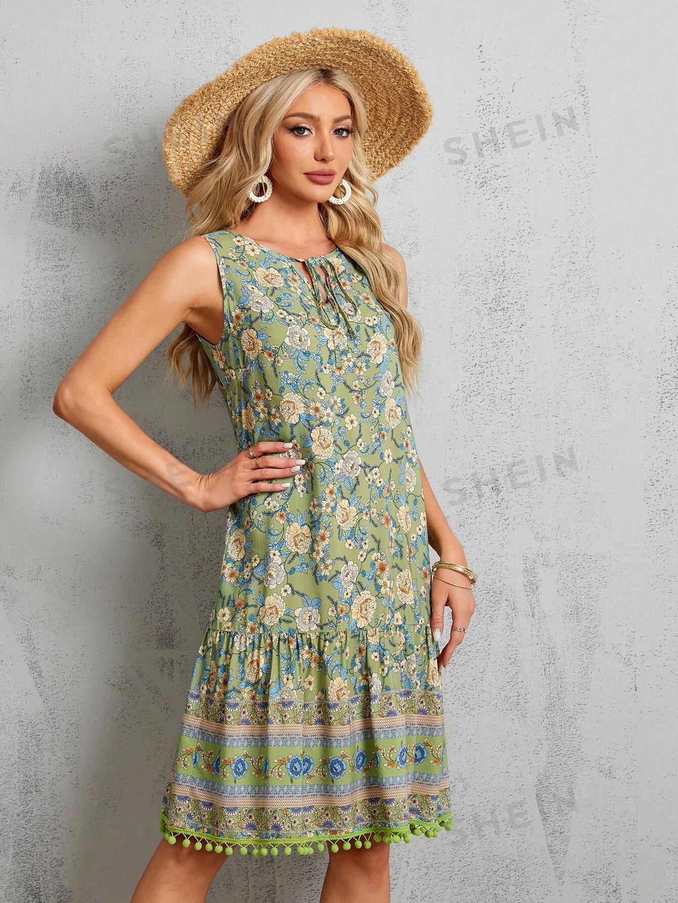 Sleek and Chic: Women's Sleeveless Floral Print Dress with Knotted Collar