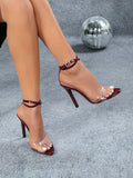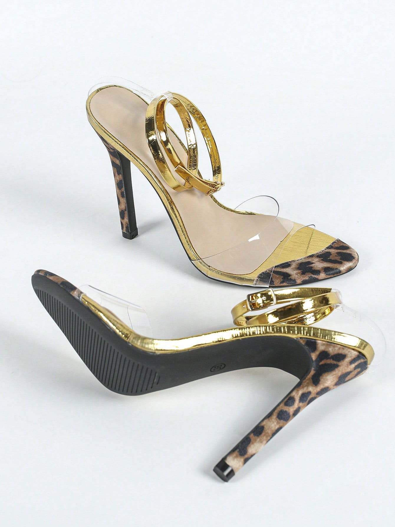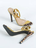 Sleek Leopard Print Stiletto Sandals: Open Toe Patent Leather Elegance