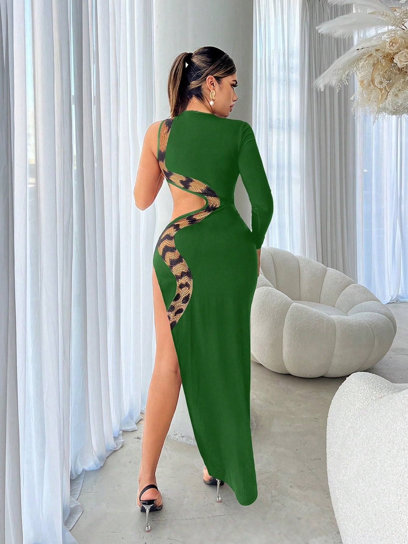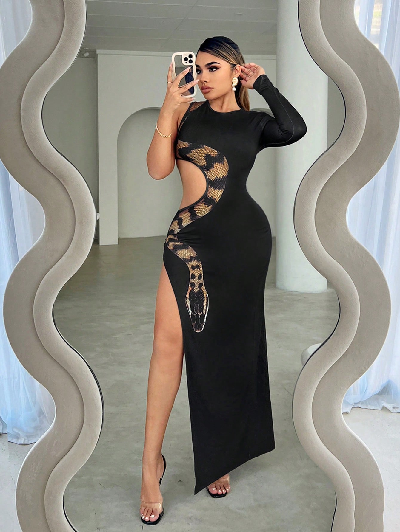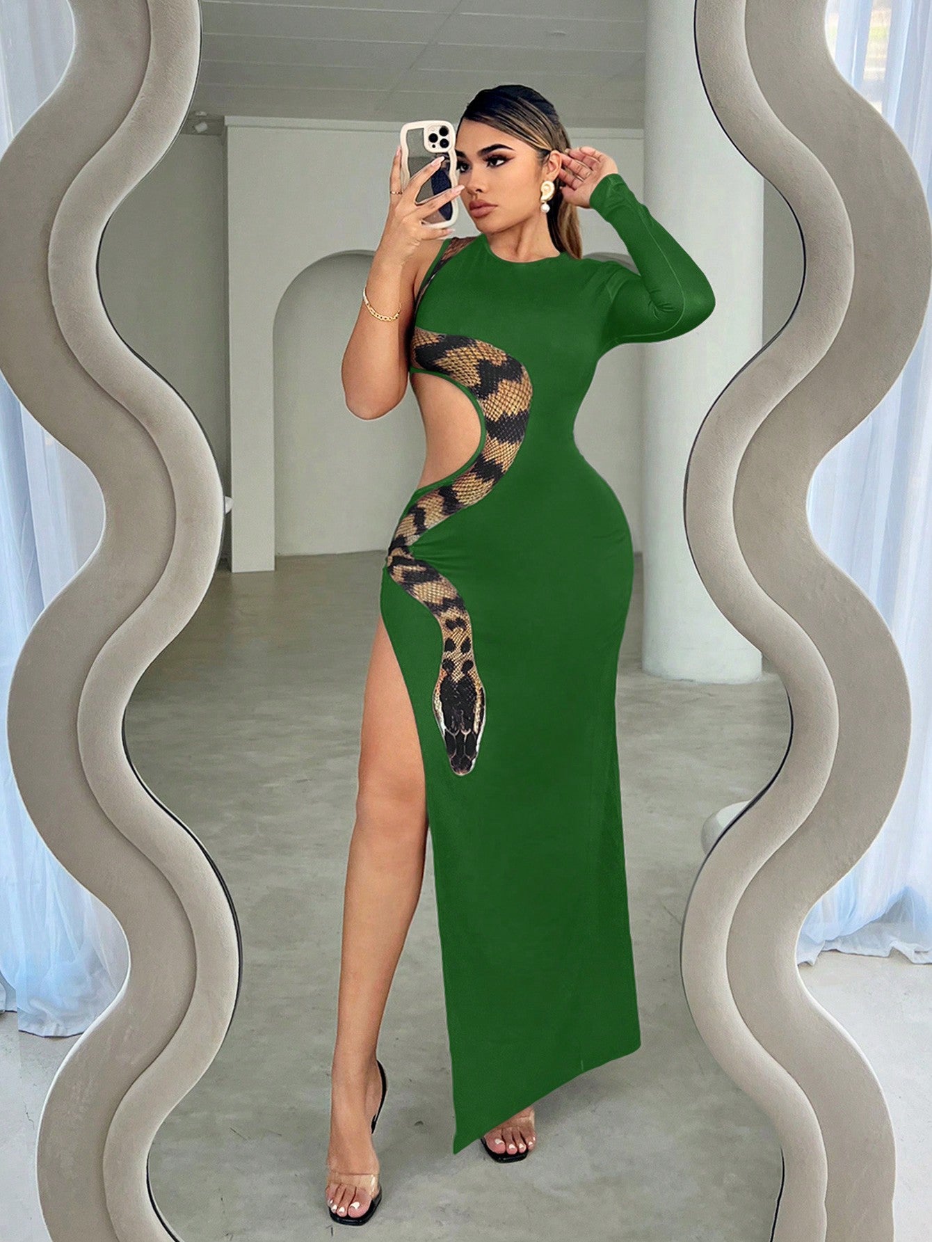 Slither in Style: Snake Skin Animal Print One Shoulder Dress