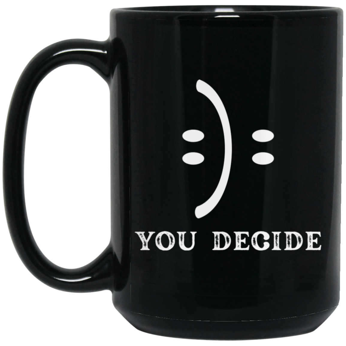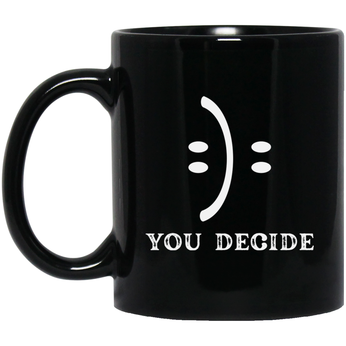 Smile Face, You Decide What You Receive, Fun Or Sad Black Mug