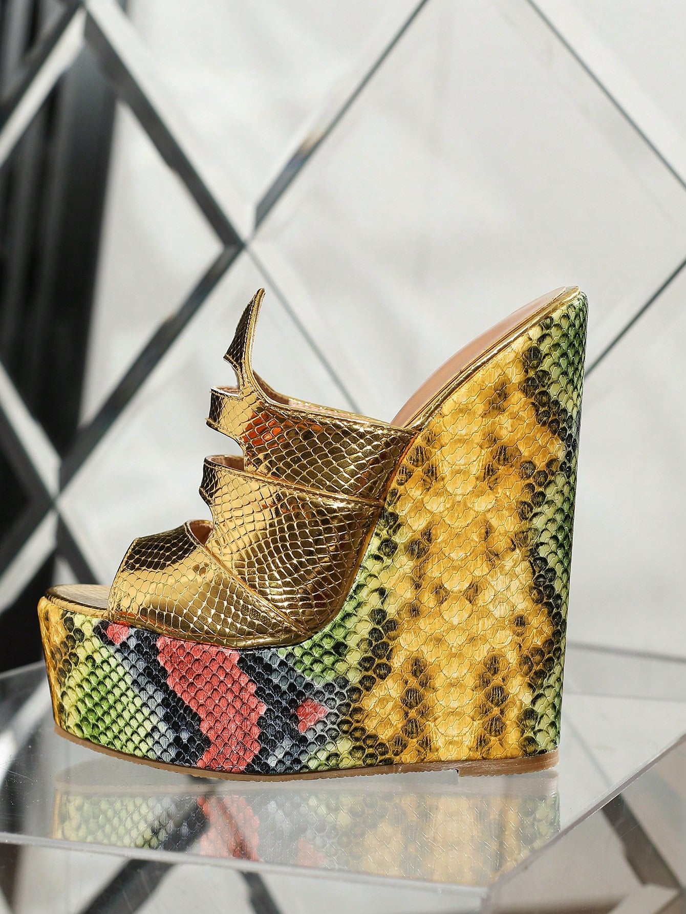 Snake Print Color Block Platform Sandal - Elevate Your Style with Super High Heel
