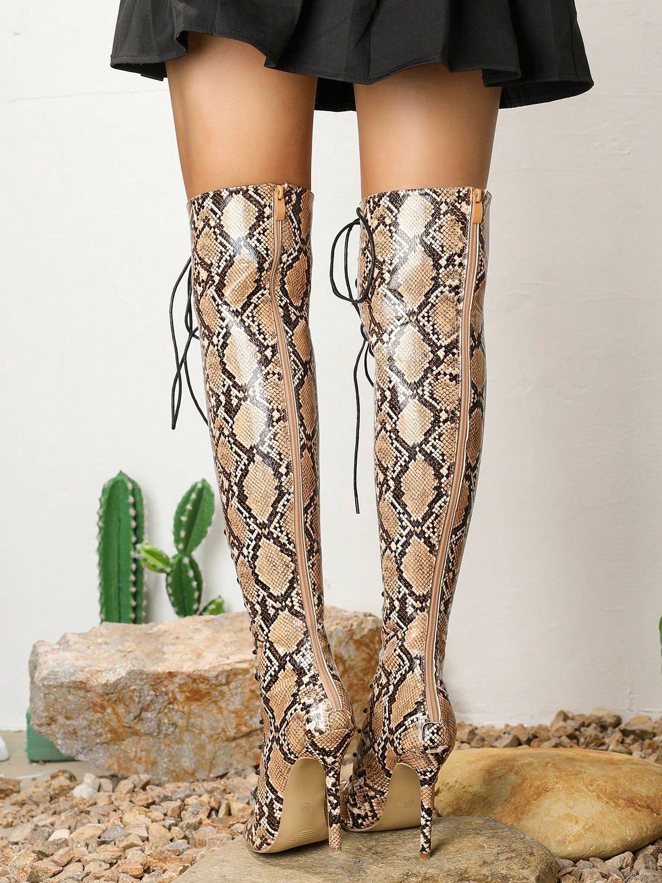 Introducing our Snake Print Stiletto: Knee-High Fashion Sandals for women. These stylish sandals feature a sleek snake print design that will elevate any outfit. With a comfortable stiletto heel and knee-high length, these sandals offer both style and comfort. Perfect for any fashion-forward woman.