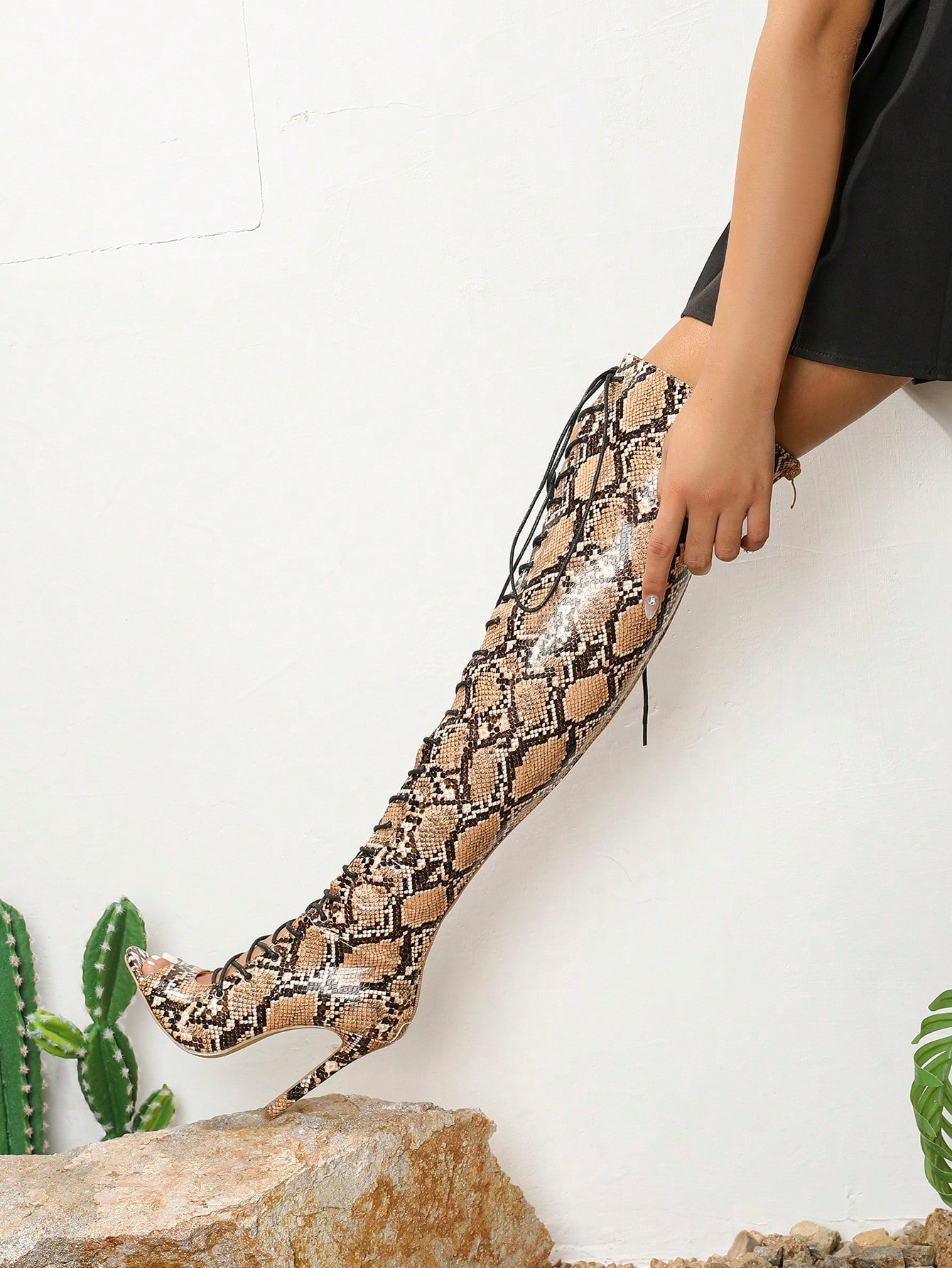 Snake Print Stiletto: Knee-High Fashion Sandals for Women
