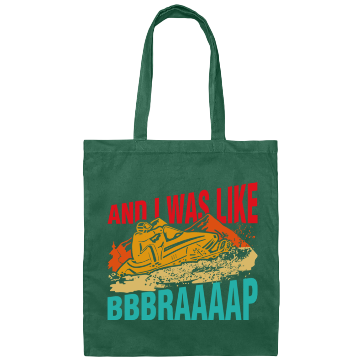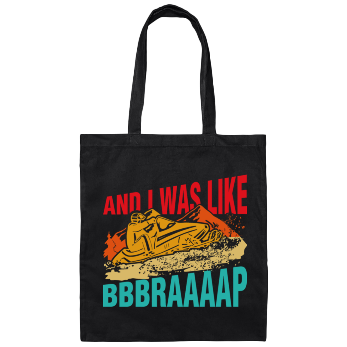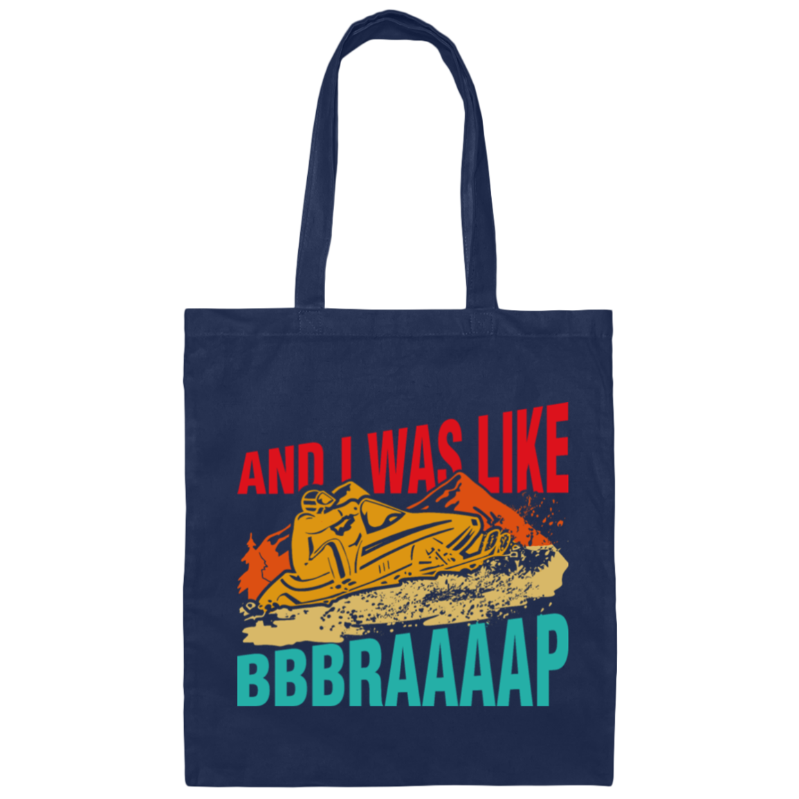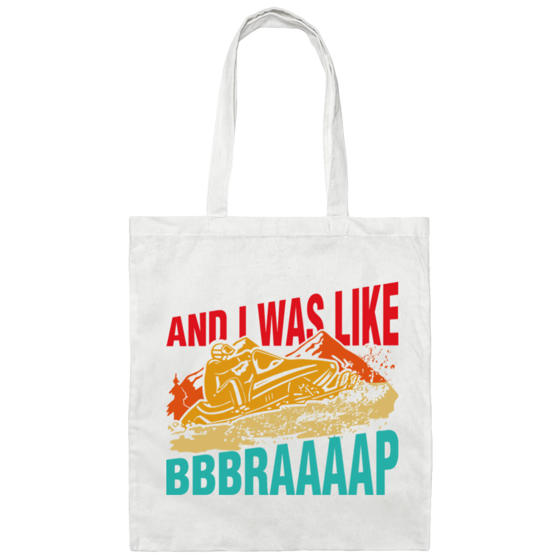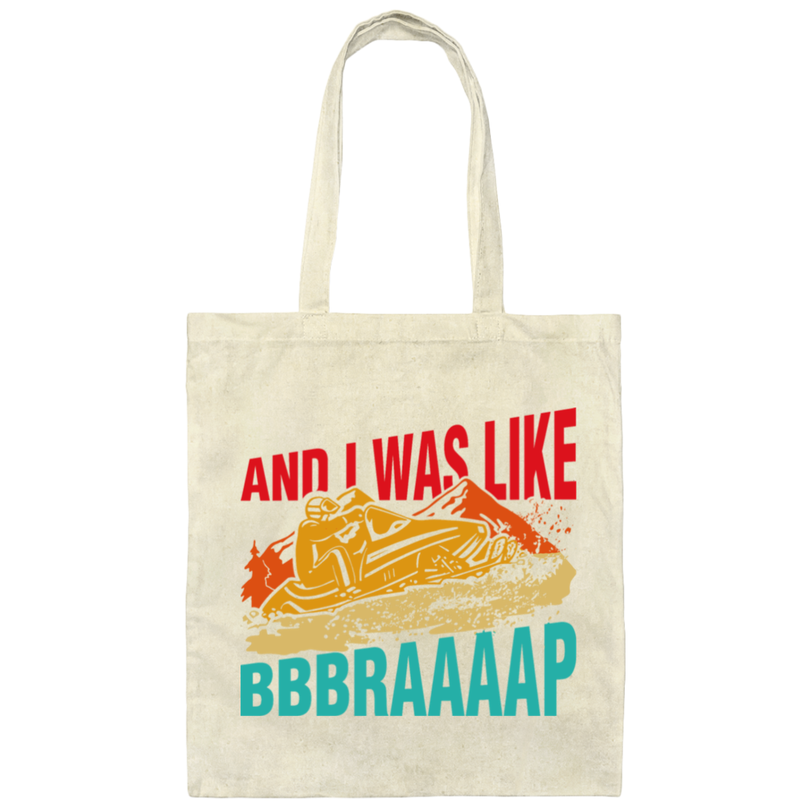 Snowmobile And I Was Like Bbbraaaap Retro Snowmobile Canvas Tote Bag