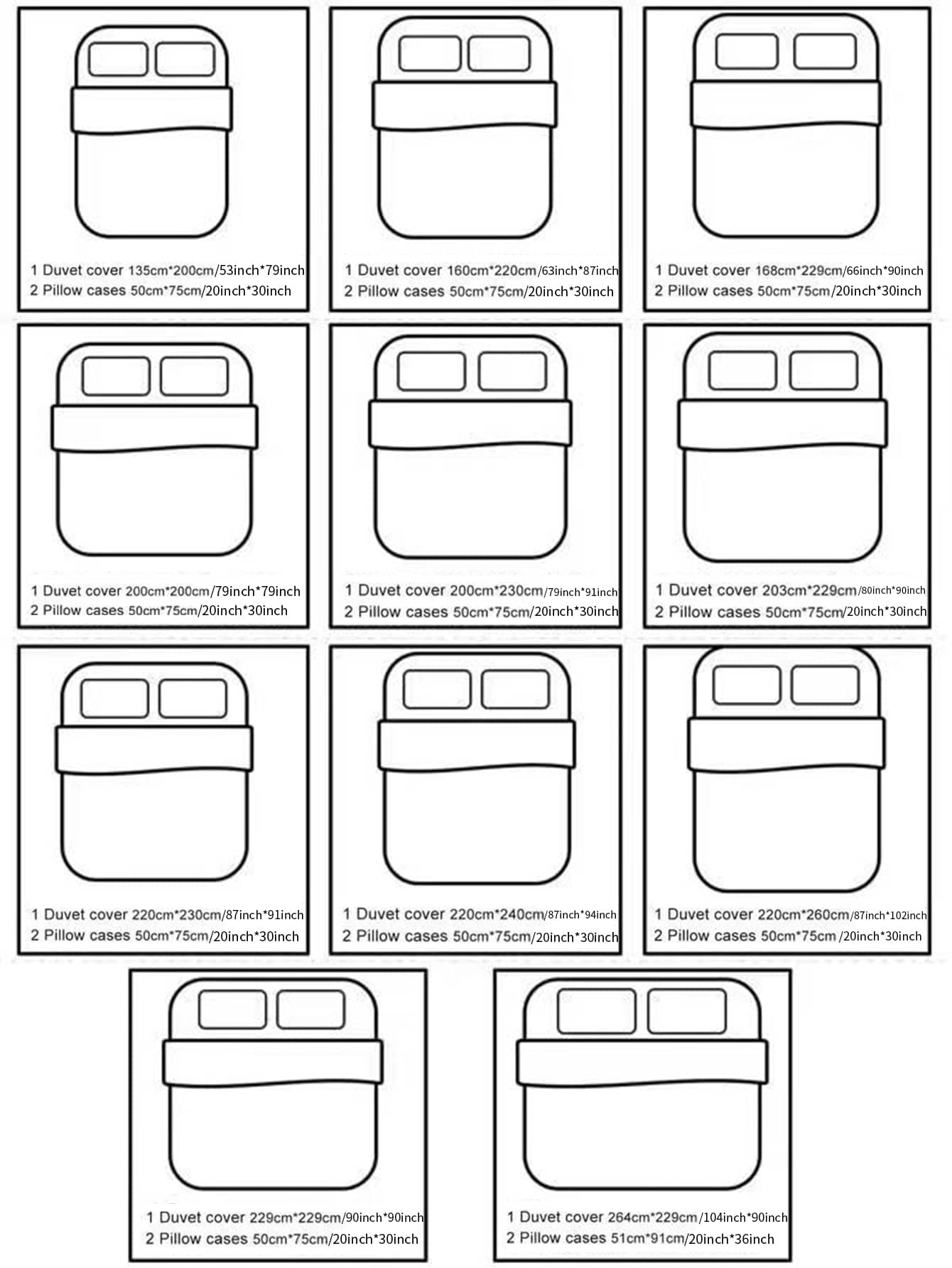 220*240 Included : Duvet Cover, 2pcs Pillow Case