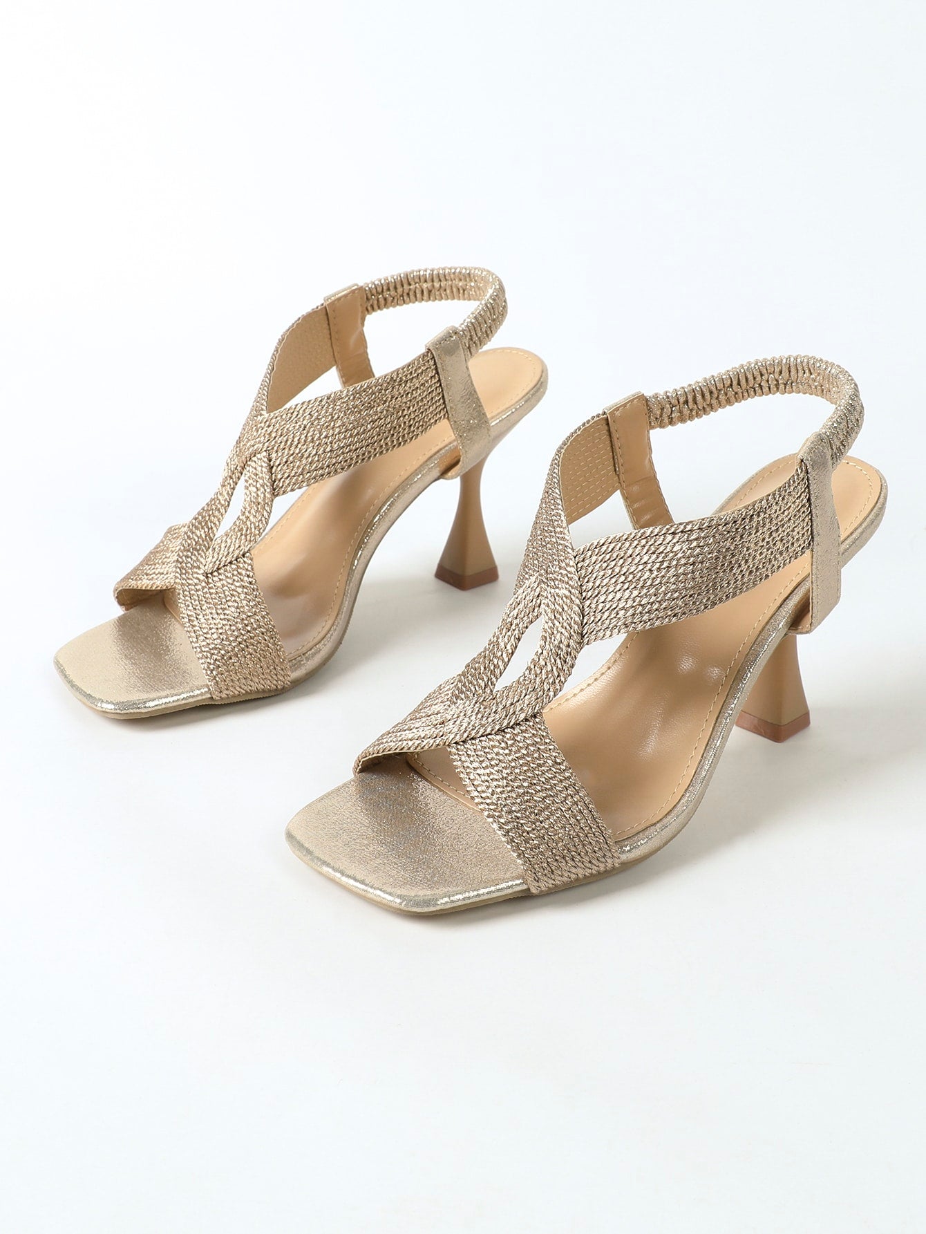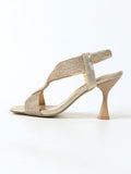 Sparkle and Shine: Champagne Glitter Pyramid Heeled Sandals for Your Party Look