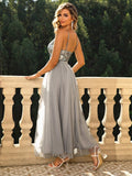 Sparkle and Shine Patchwork Glitter Mesh Split Strap Dress