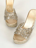 Sparkle in Style: Women's Platform Wedge Sandals with Rhinestones