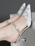 Introducing our Sparkling Elegance: Rhinestone-Embellished High Heel Pointed Toe Slip-On Shoes. Perfect for the 2024 Spring season, these Silver Mix chunky heel high heel pumps offer versatile style for any occasion. Elevate your look with sparkling rhinestone embellishments and a sleek pointed toe design.