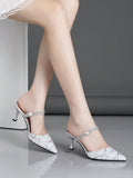 Sparkling Elegance: Rhinestone-Embellished High Heel Pointed Toe Slip-On Shoes