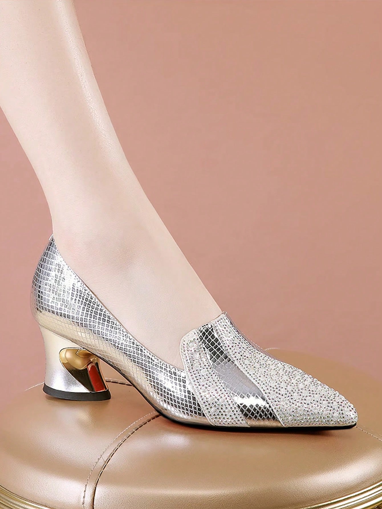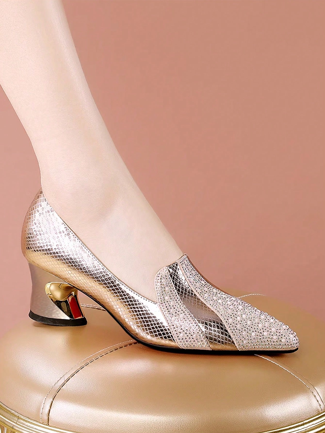 Sparkling Elegance: Women's Chunky Heels with Rhinestone Embellishments in Versatile Colors