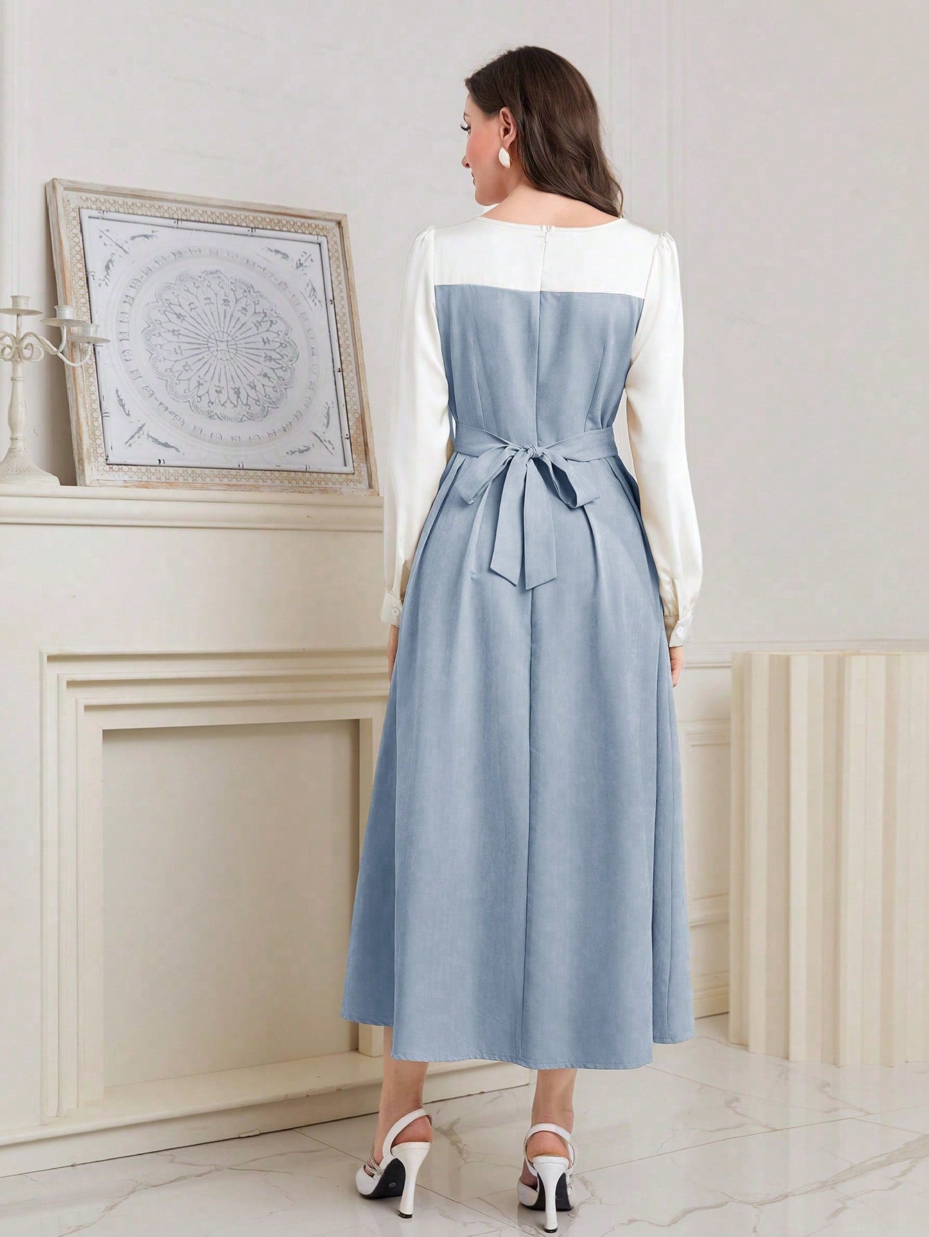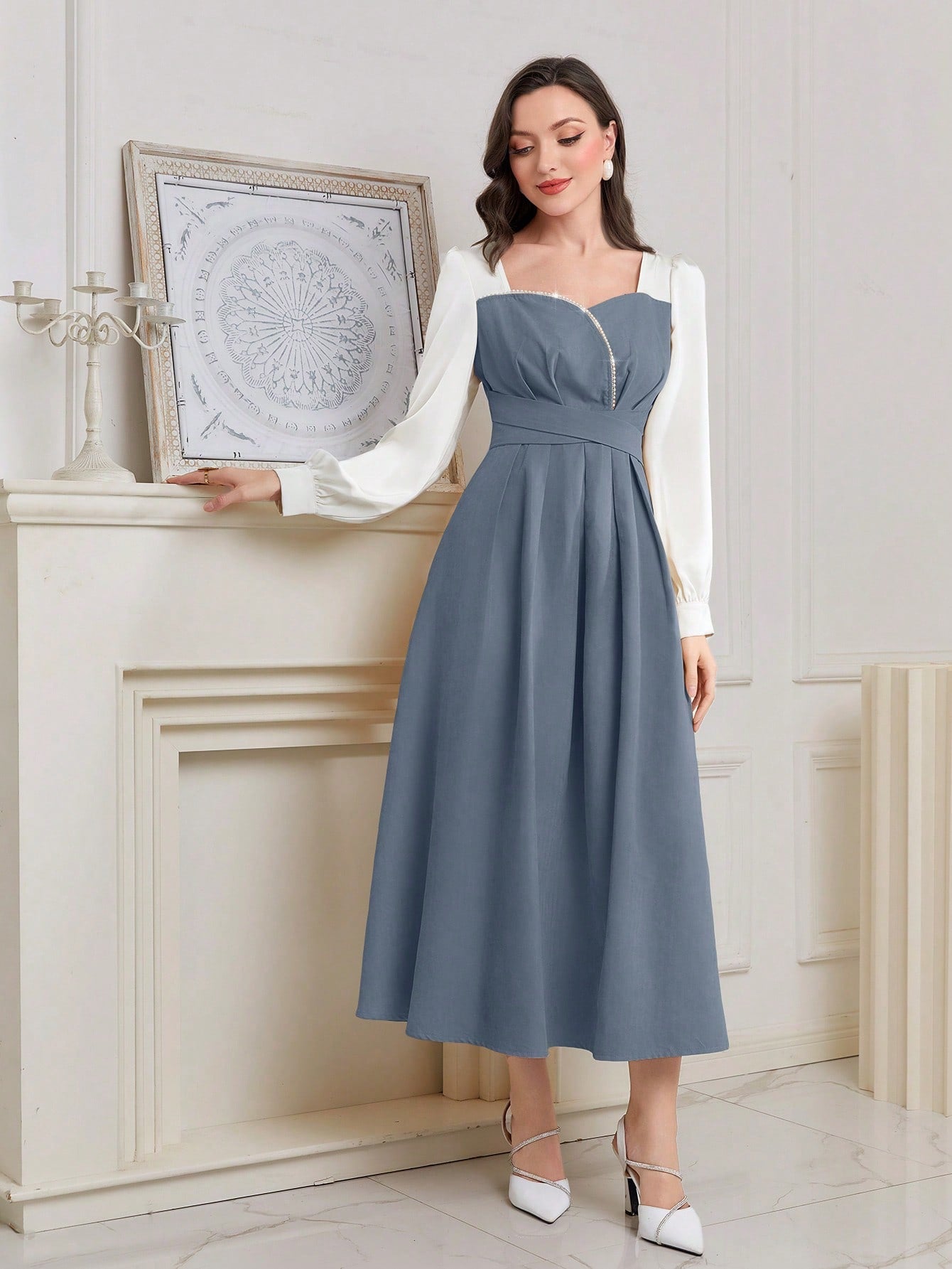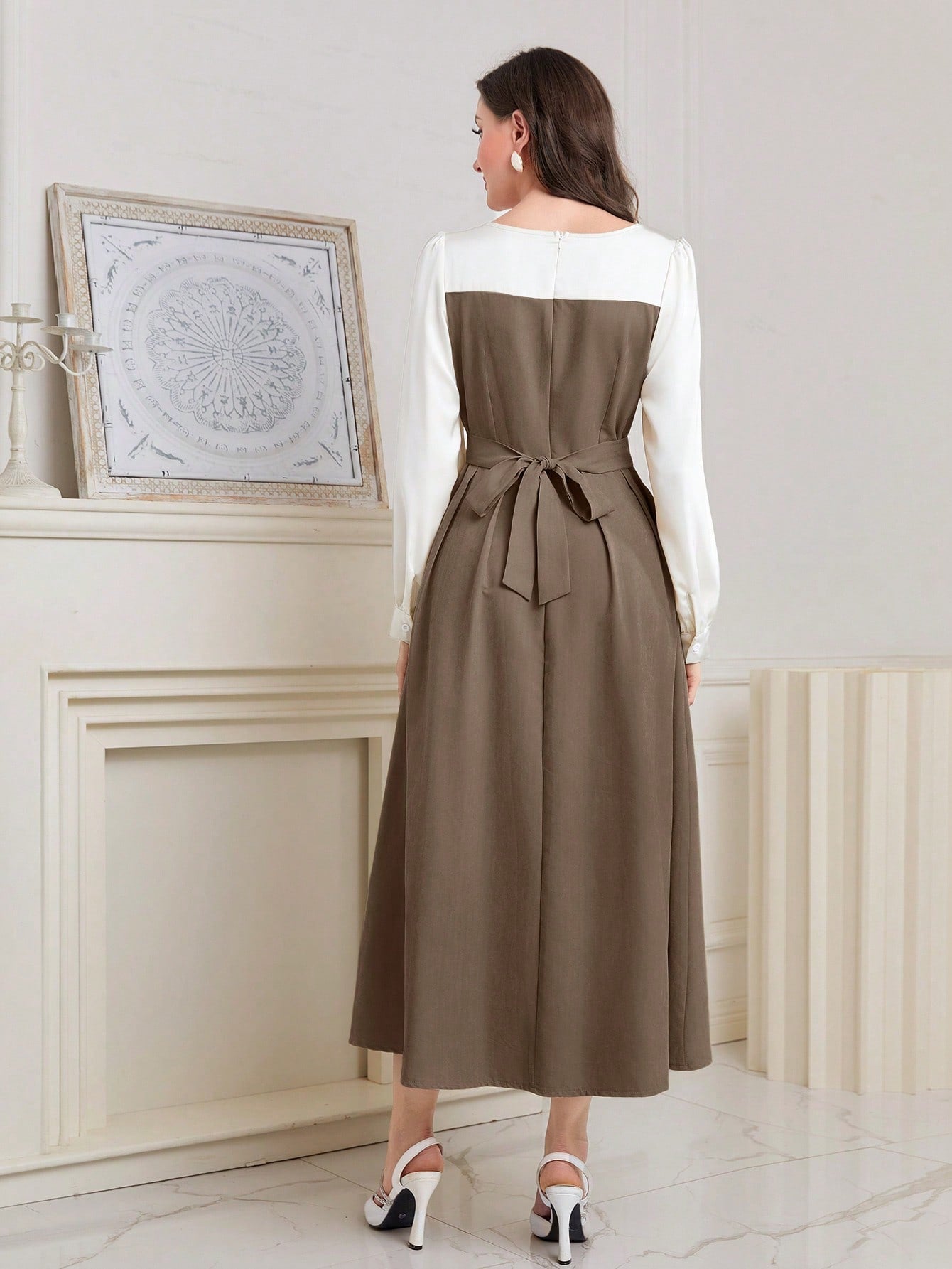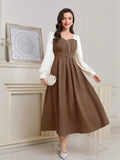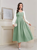 Sparkling Elegance: Women's Color Block Sequin Puff Sleeve Dress