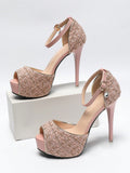 Sparkling Glam: Women's Glitter Ankle Strap Peep Toe Stiletto Pumps