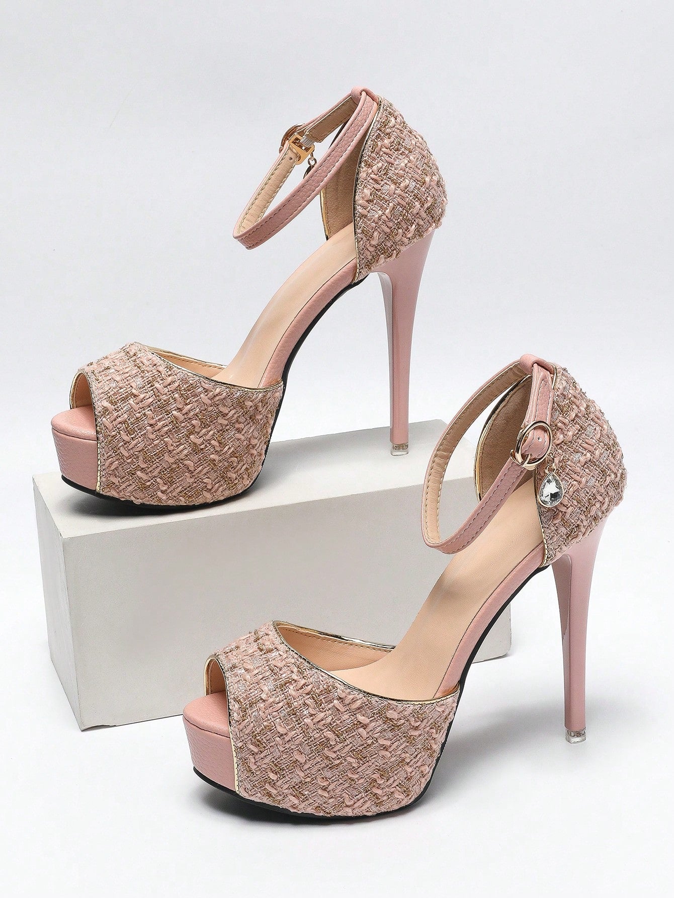 Elevate your outfit with Sparkling Glam's Glitter Ankle Strap Peep Toe Stiletto Pumps. The ankle strap provides comfort and support while the glitter adds a touch of glamour. Step out in style with these statement shoes that will surely turn heads.