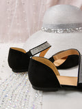 Sparkling Rhinestone Strappy Flats: Black Suedette with Fashionable Contrast Color