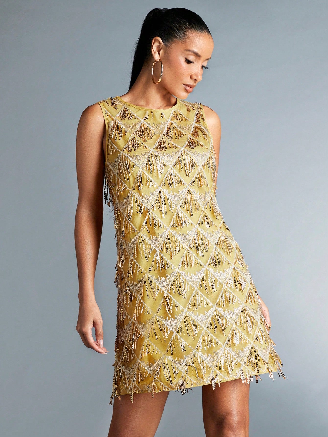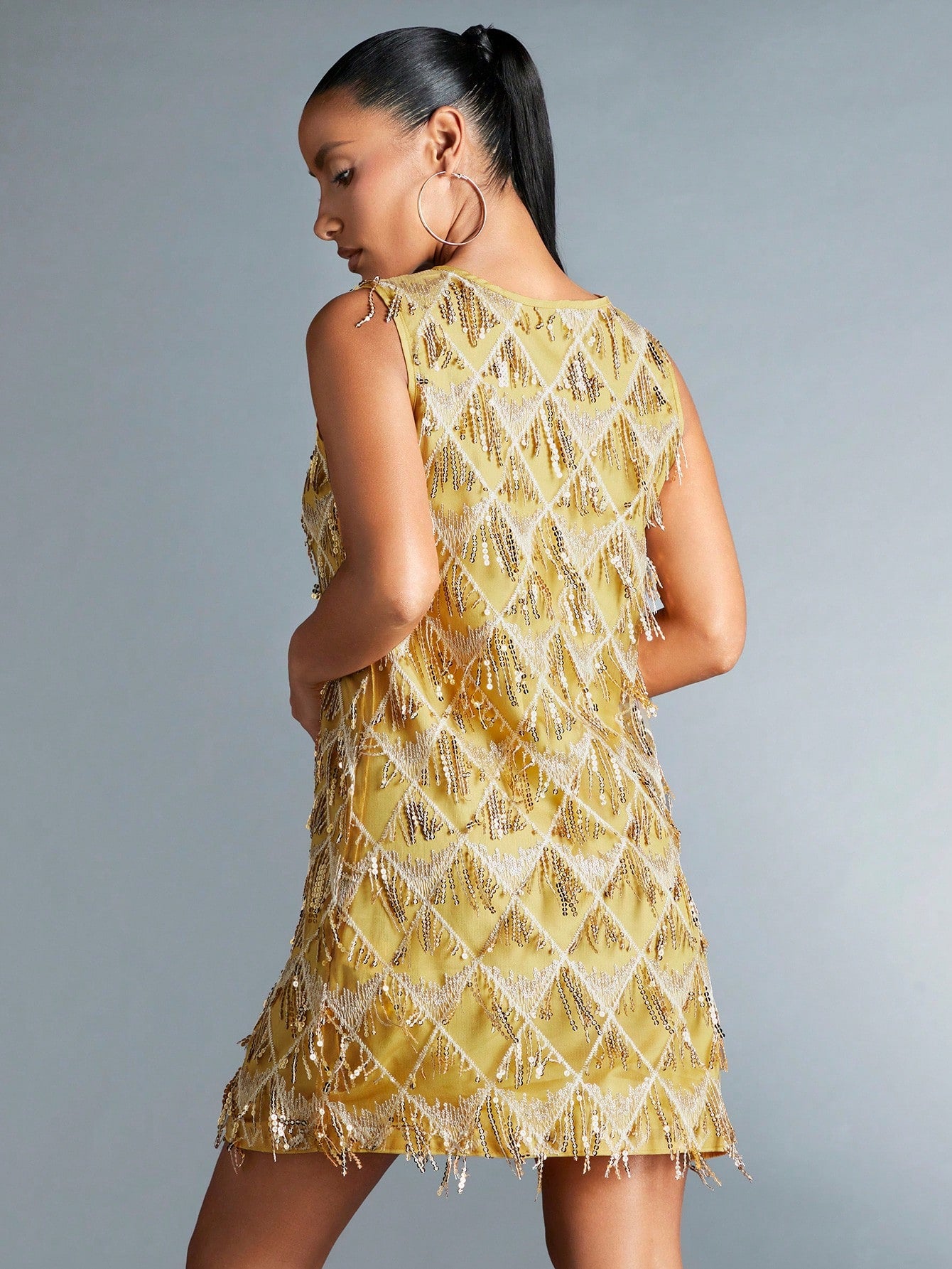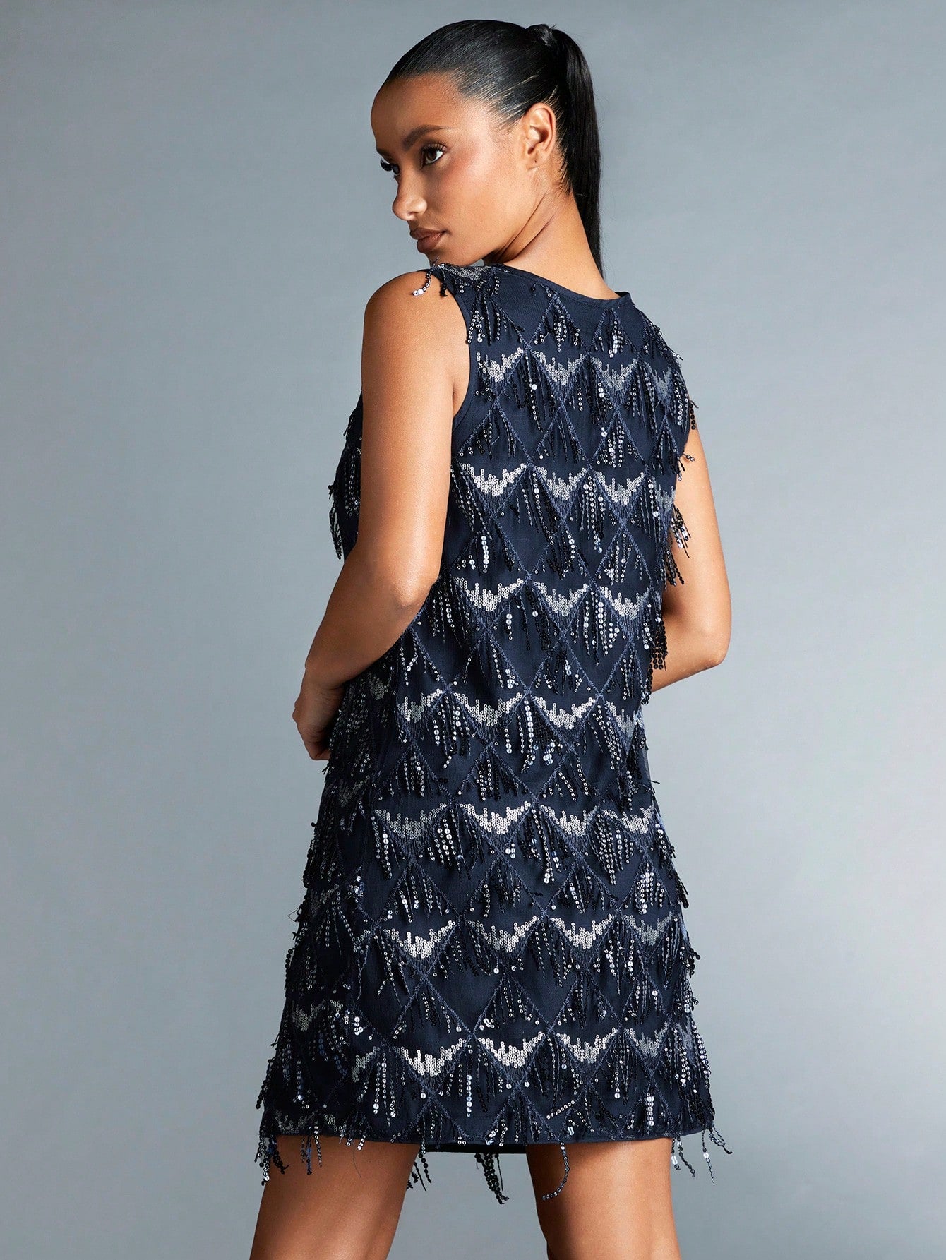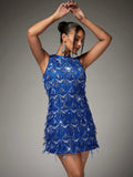 Sparkling Sensation: Contrast Sequin Fringe Tank Dress