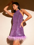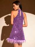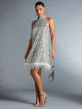 Sparkling Sequin Halter Neck Patchwork Dress: The Ultimate Outfit for Your Next Night Out