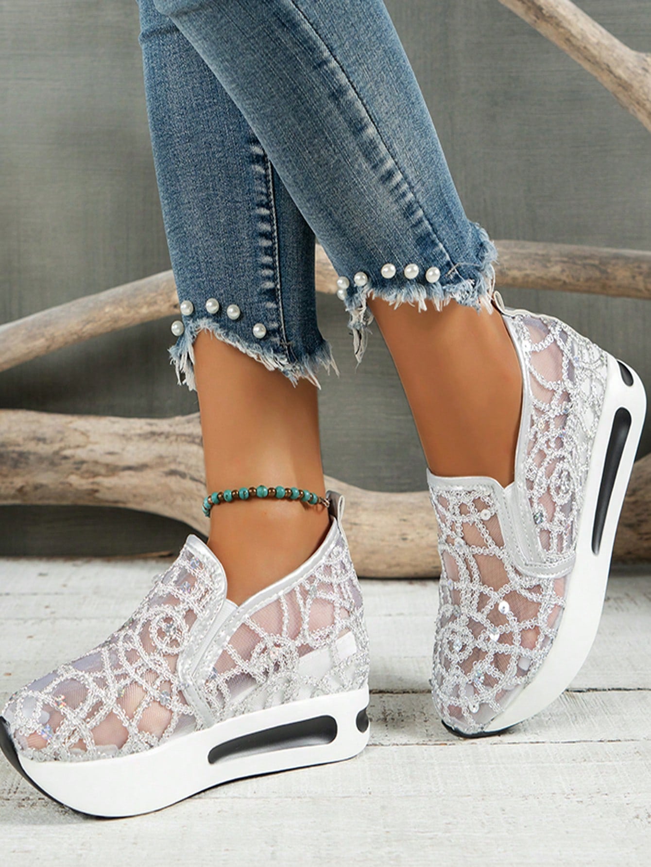 Sparkling Sequins Slip-On Wedge Sneakers: Elevate Your Sporty Style