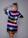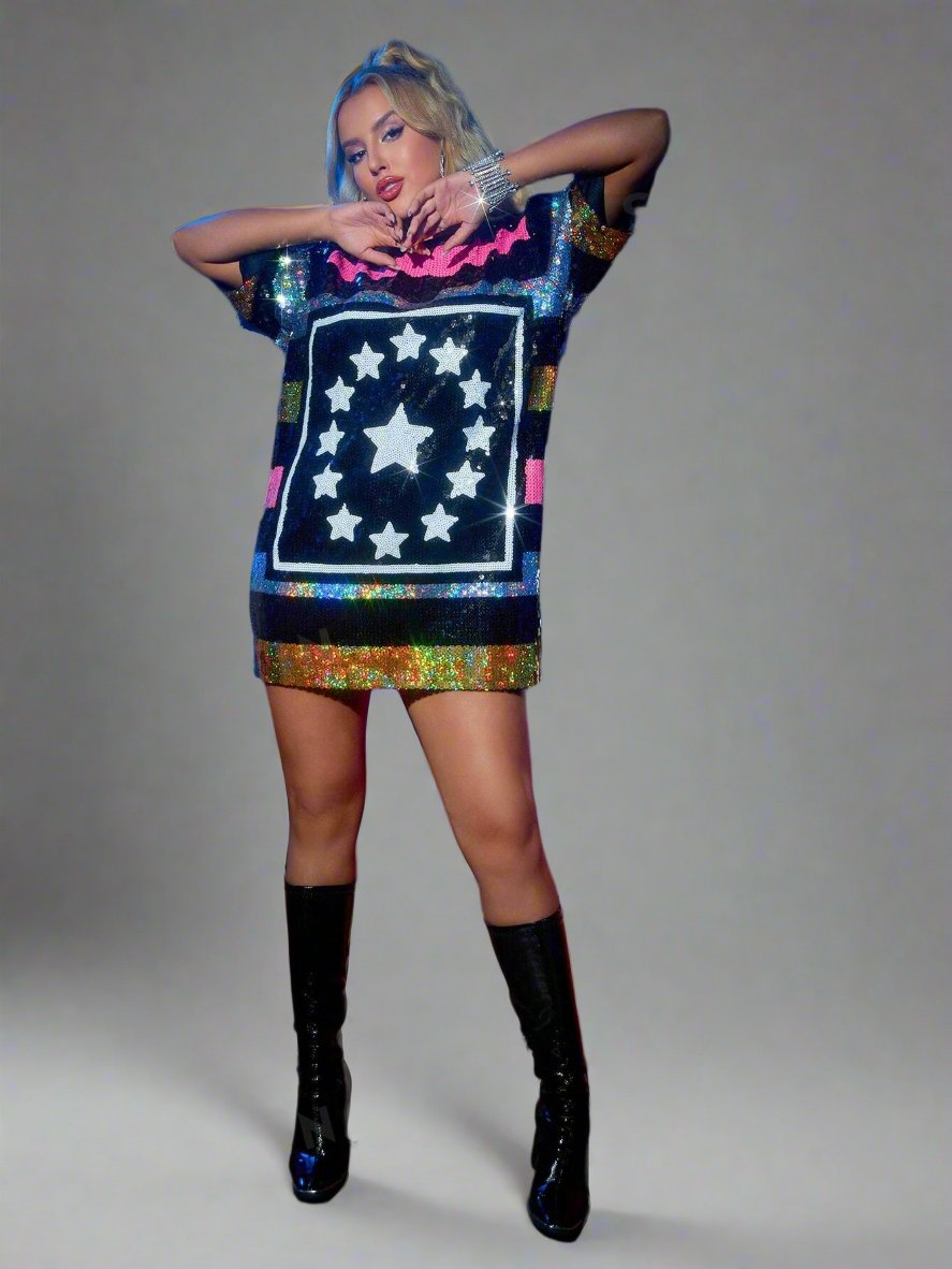 Sparkling Starlight: Street Star Sequin Short Sleeve T-Shirt Dress