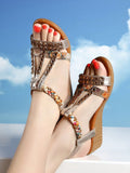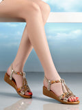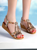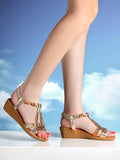 Sparkling Step: Metallic Rhinestone Wedge Sandals for Effortless Glam