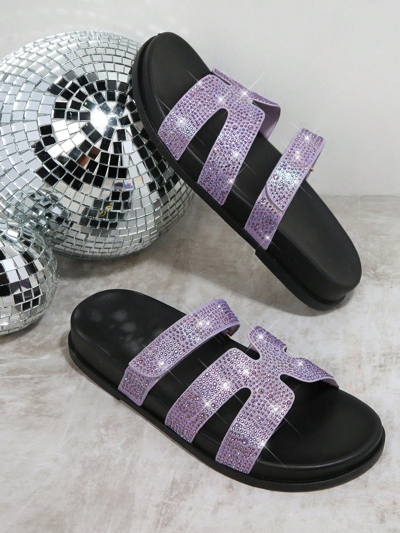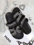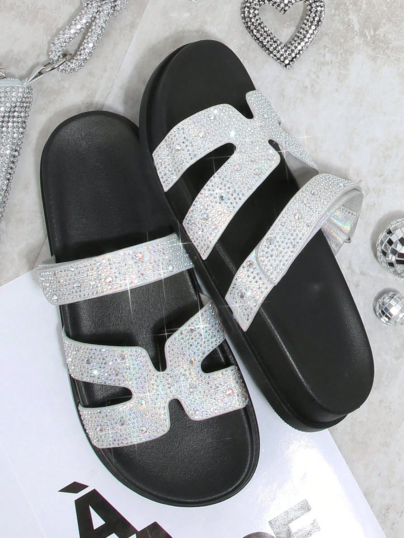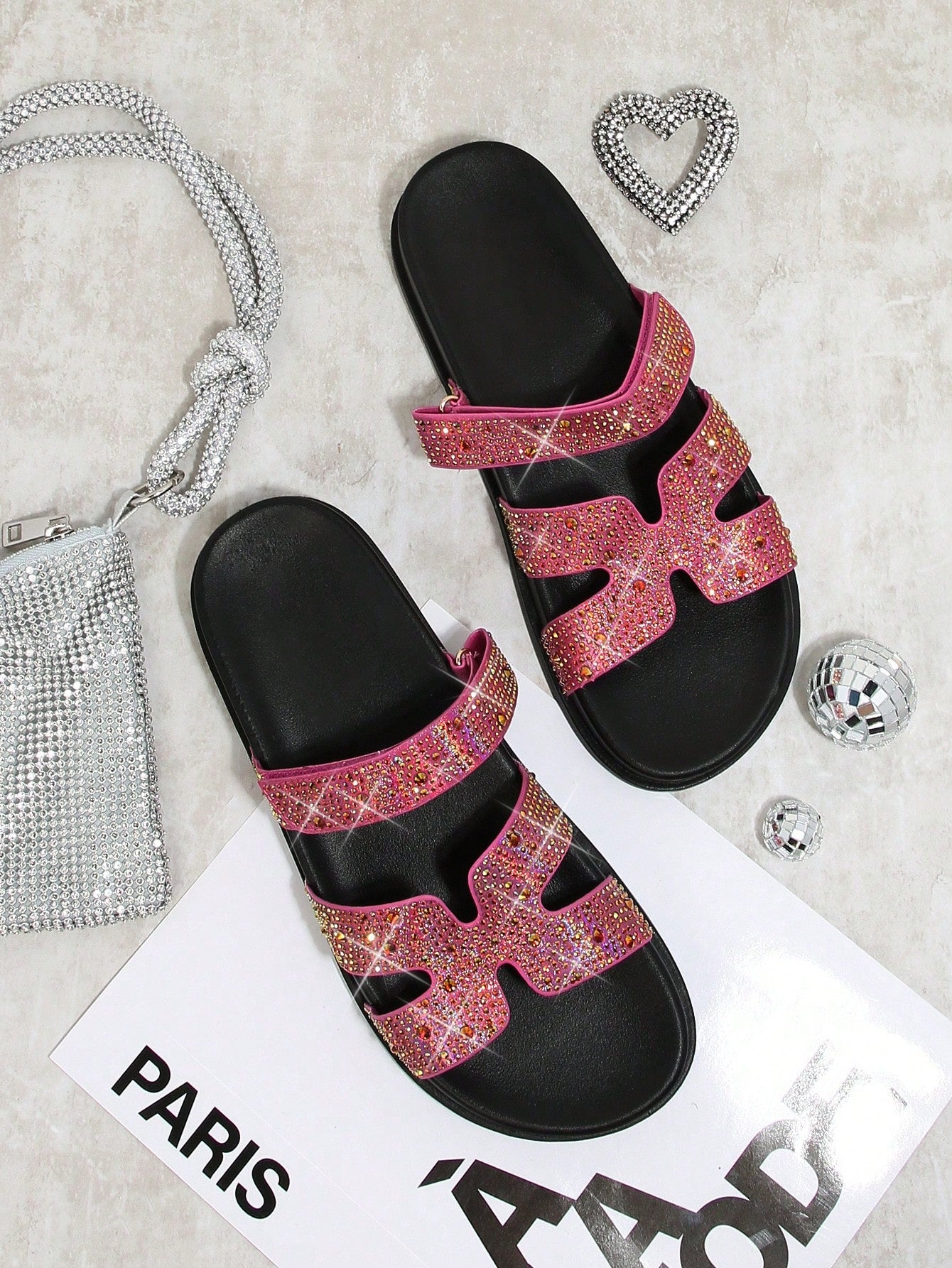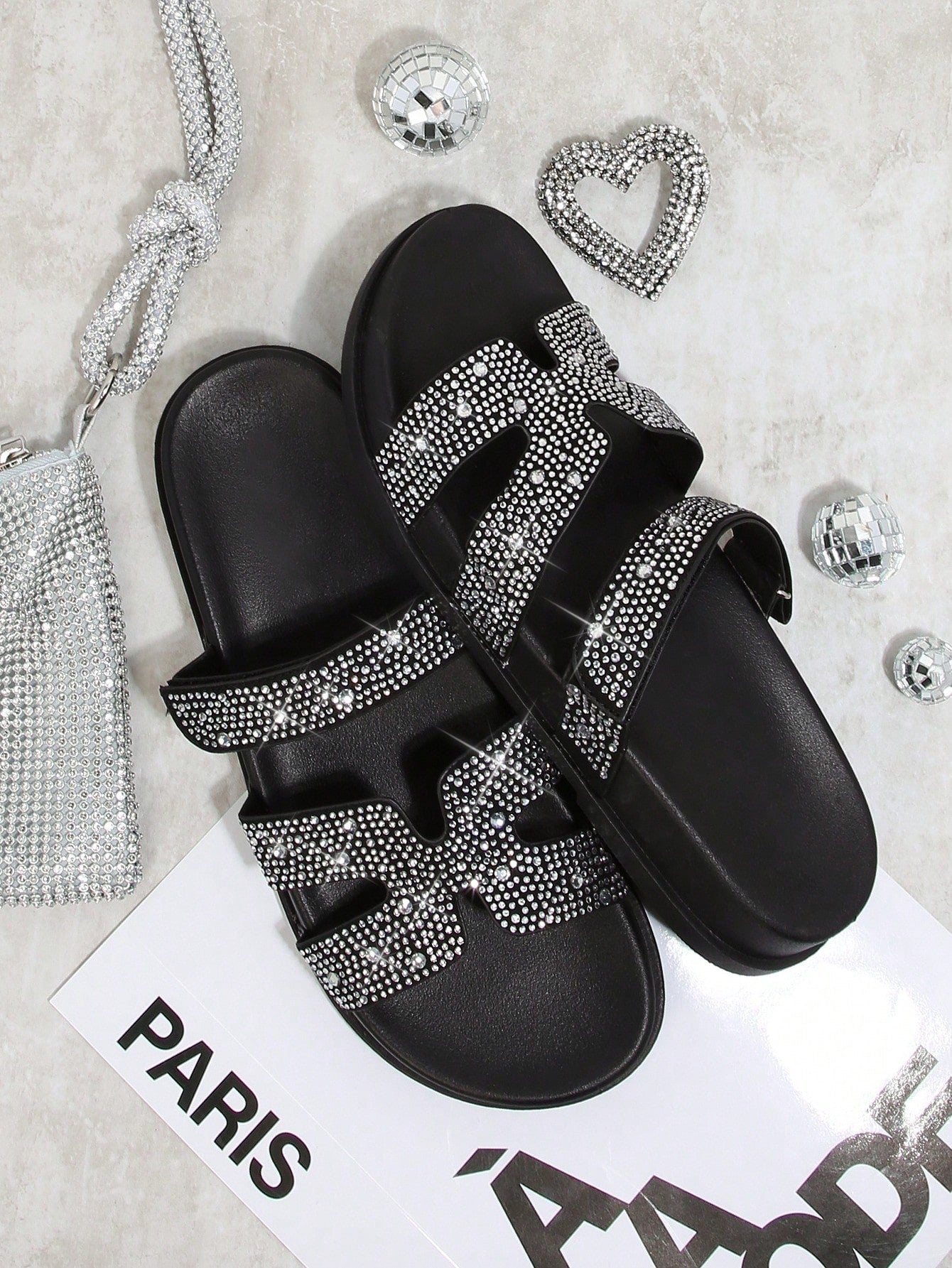 Sparkling Steps: Rhinestone Decorated Flat Sandals for Women