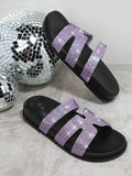 Elevate your style with Sparkling Steps: Rhinestone Decorated Flat Sandals for Women. Embellished with sparkling rhinestones, these sandals add the perfect touch of glamour to any outfit. Comfortable and stylish, these sandals are a must-have for any fashion-forward woman. Perfect for any occasion, from casual outings to special events.