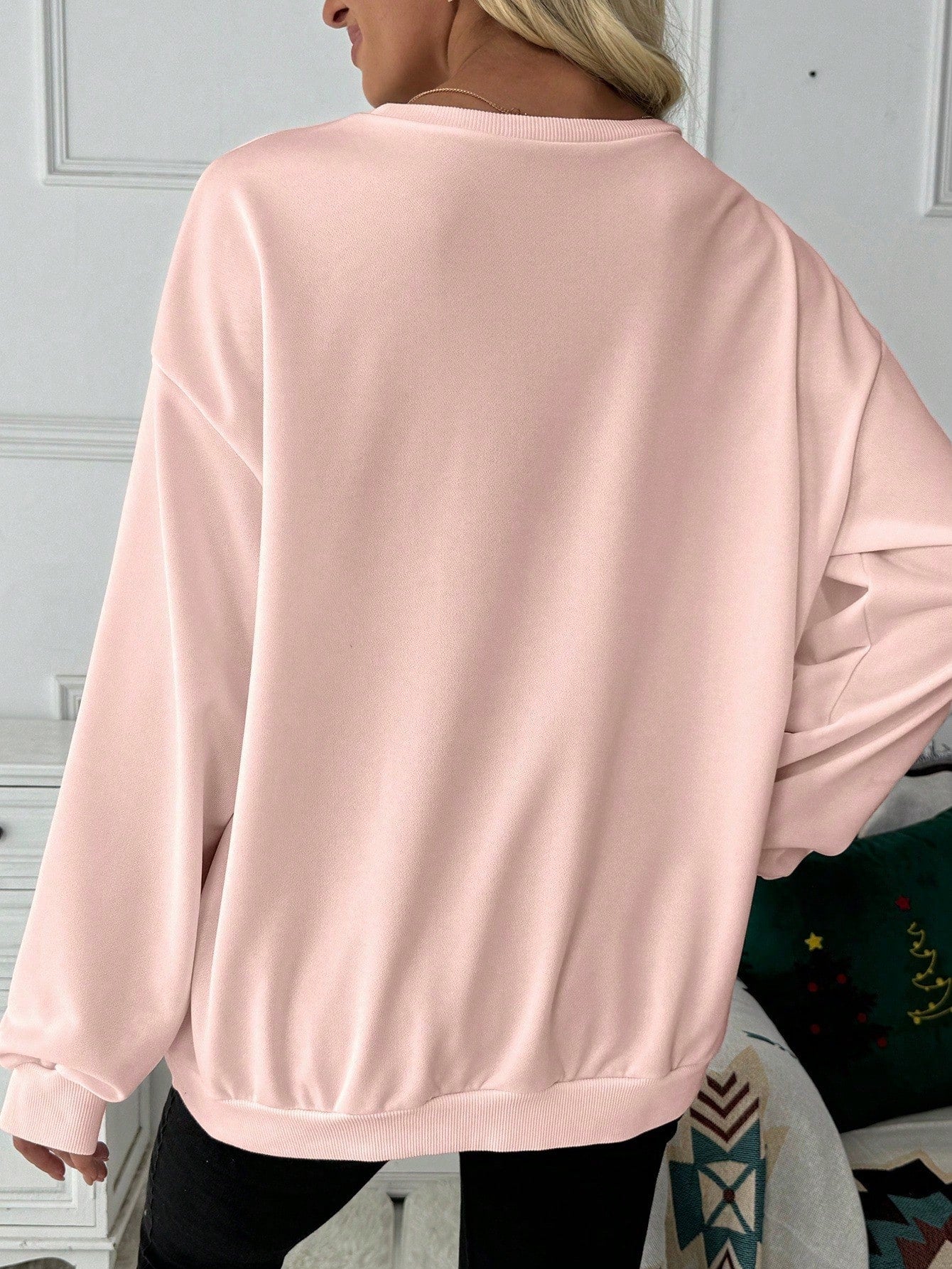Sparkly Santa Claus Oversized Sweatshirt - Festive Glitter & Bow Print for Cozy Winter Style