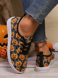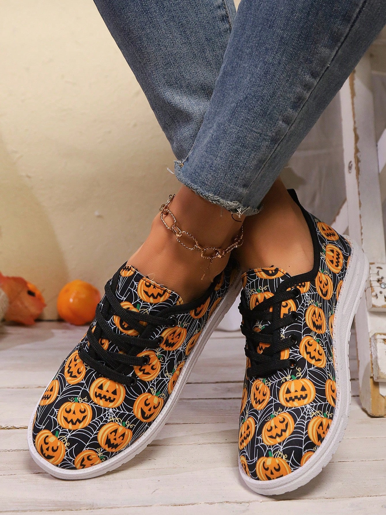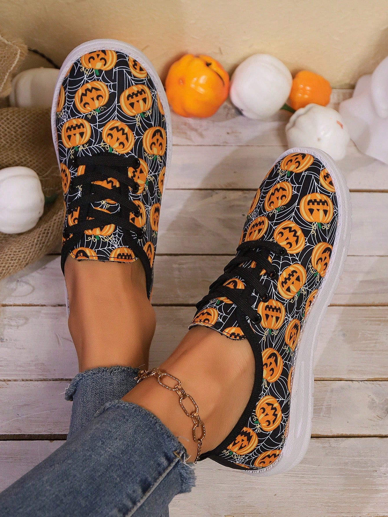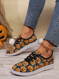 Spooktacular Comfort: Women's Halloween Pumpkin Skull Print Sneakers