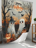 Spooktacular Halloween Bathroom Decor Set: Shower Curtain, Mat, and Toilet Cover Ensemble