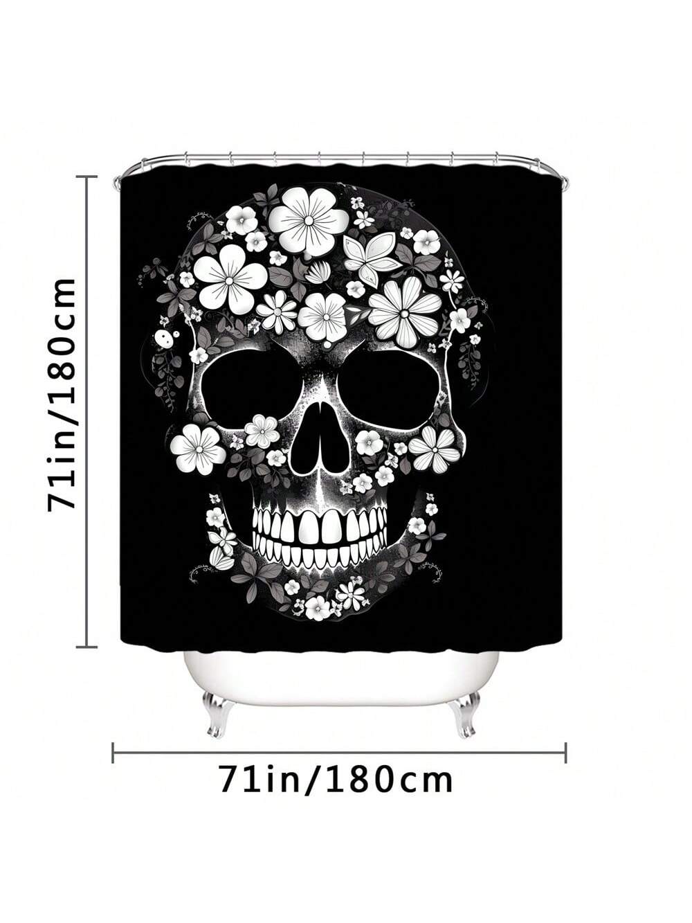 Introducing Spooky Chic: Black Skull Pattern Shower Curtain Set. Decorate your home with this stylish and spooky addition. The bold black skull design adds a touch of edginess to any bathroom. Made with high-quality materials, this shower curtain set will elevate your space with its chic and unique style.