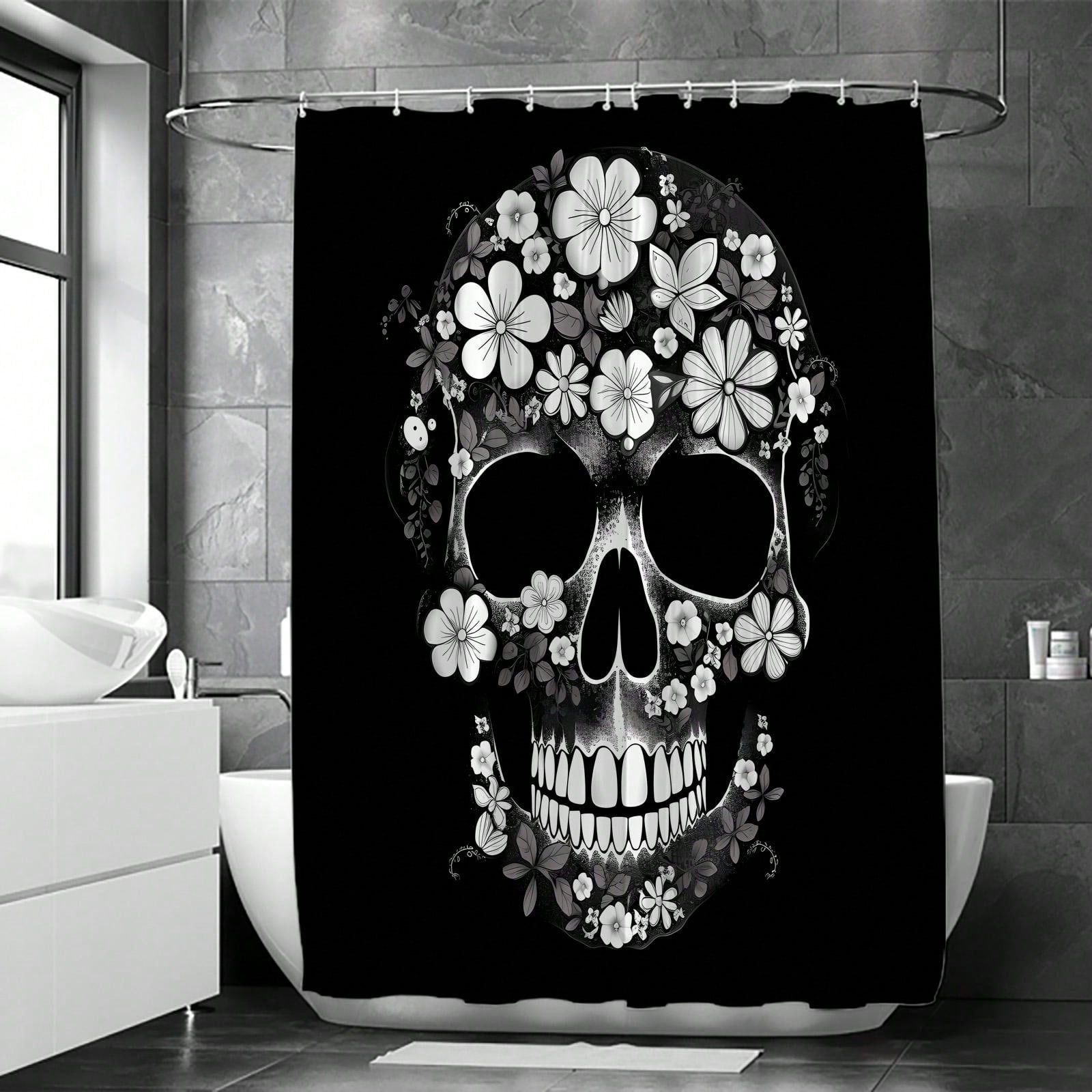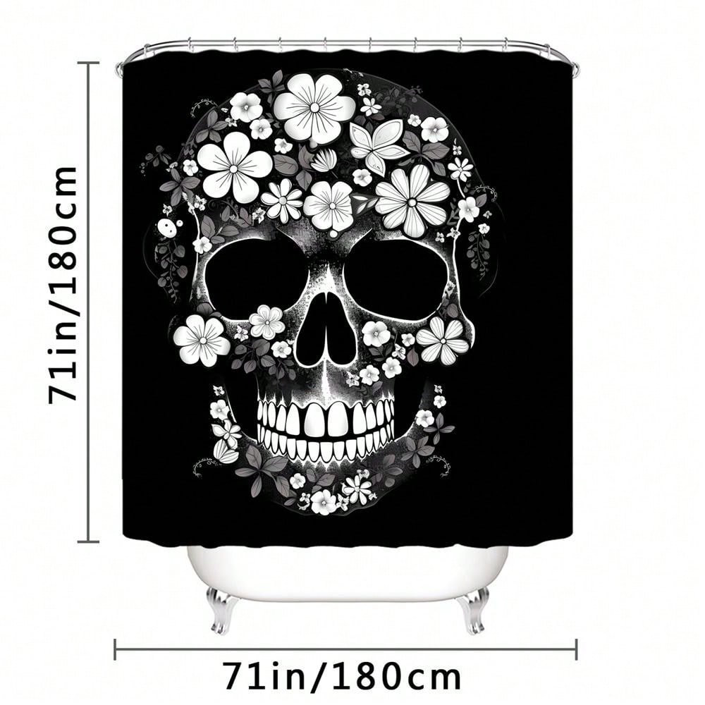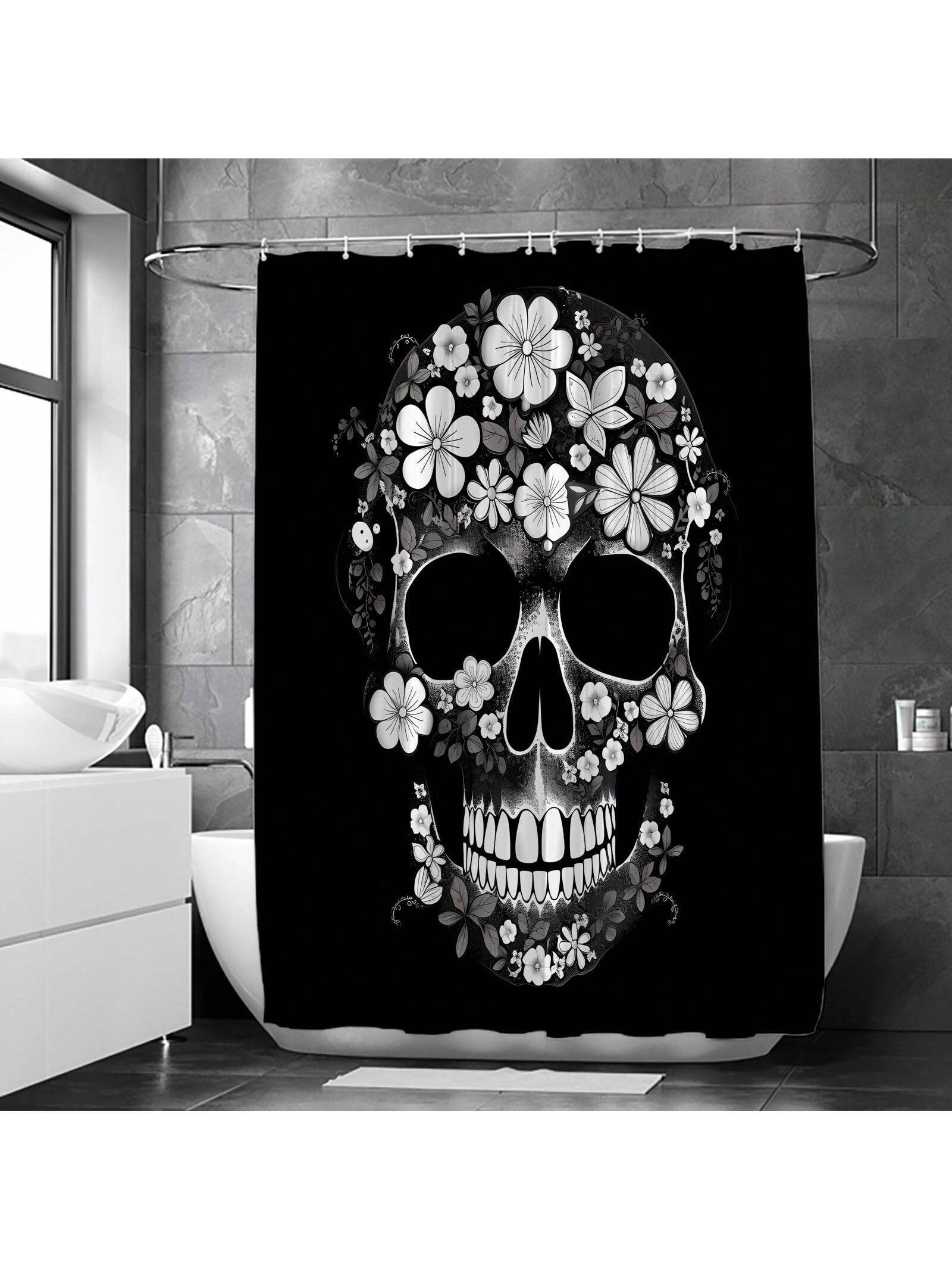 Spooky Chic: Black Skull Pattern Home Decor Shower Curtain Se
