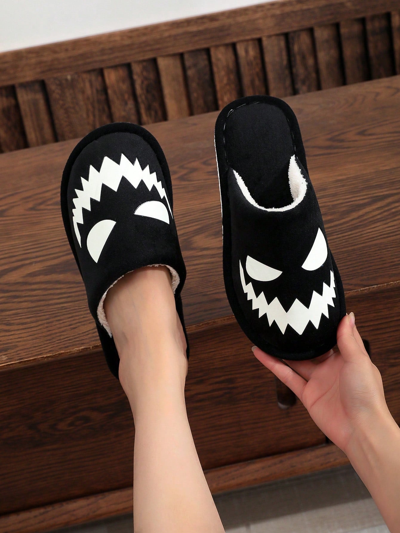 Illuminate your Halloween spirit with these Spooky Night Light Couple Indoor Slippers. The festive design and comfortable fit make them perfect for lounging around the house. Say goodbye to cold feet and add a touch of scary fun to your indoor Halloween decorations.