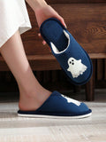 Spooky Halloween Night Light Couple Indoor Slippers - Comfortable & Festive Floor Slippers