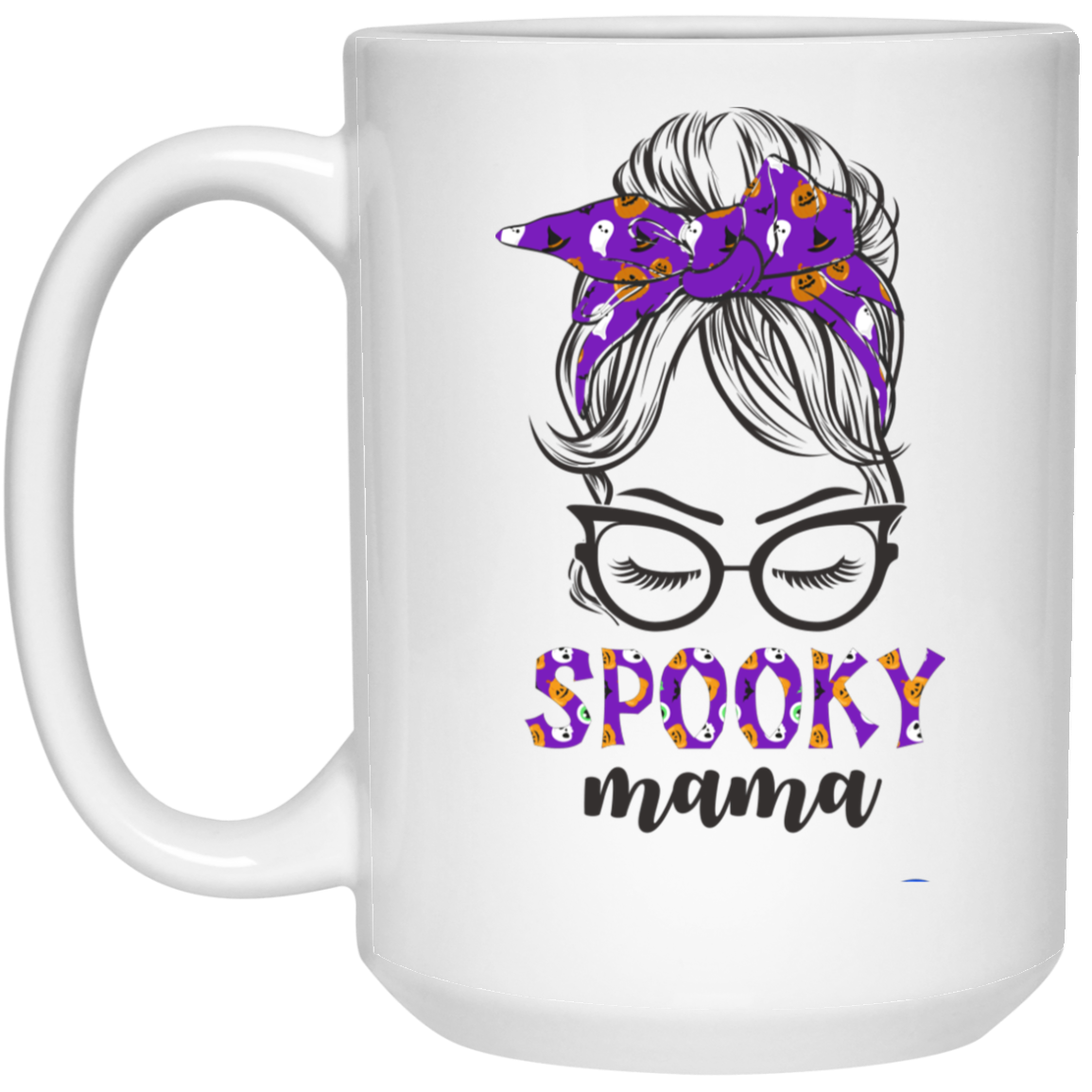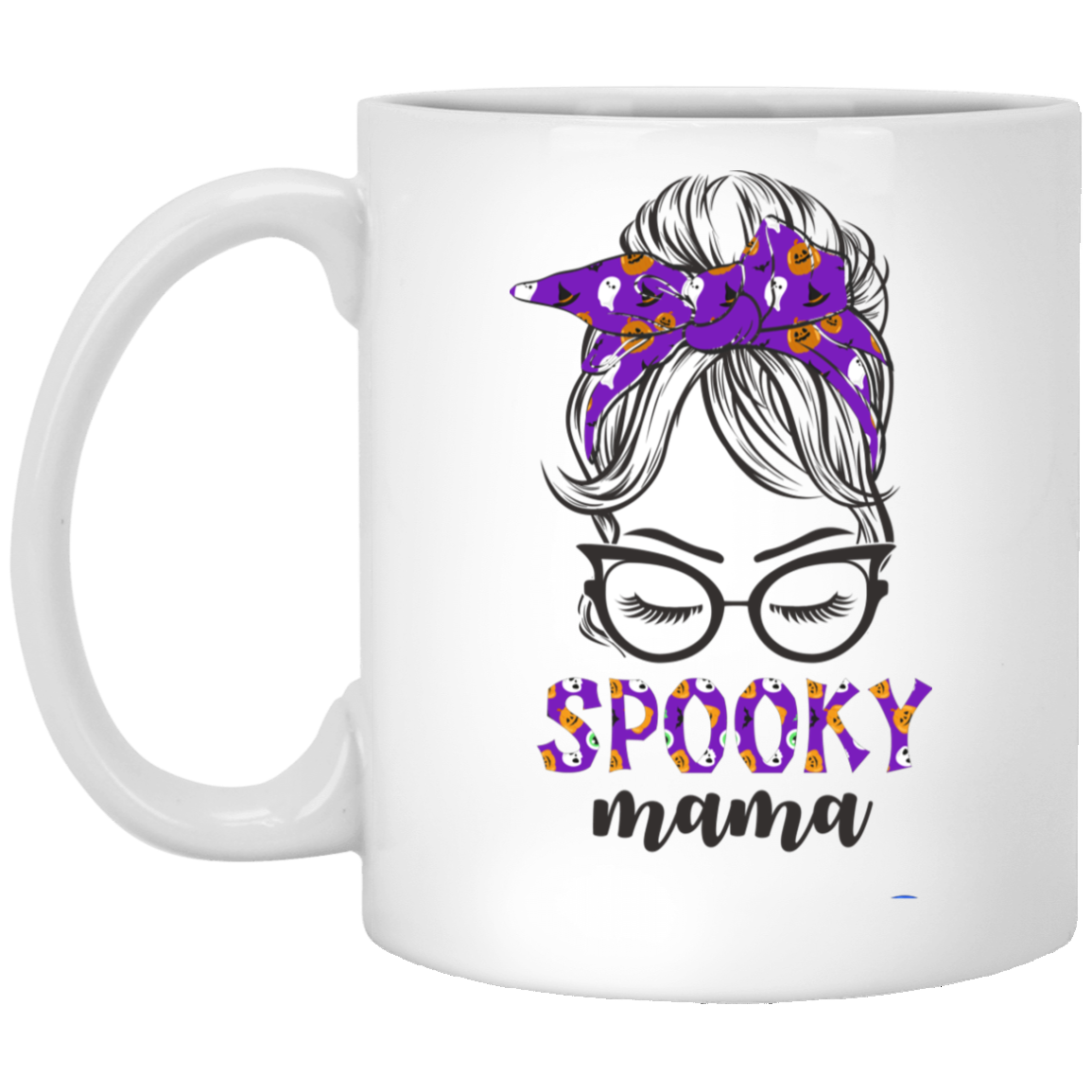 Spooky Mama, Halloween Party, Messy Buns Halloween White Mug