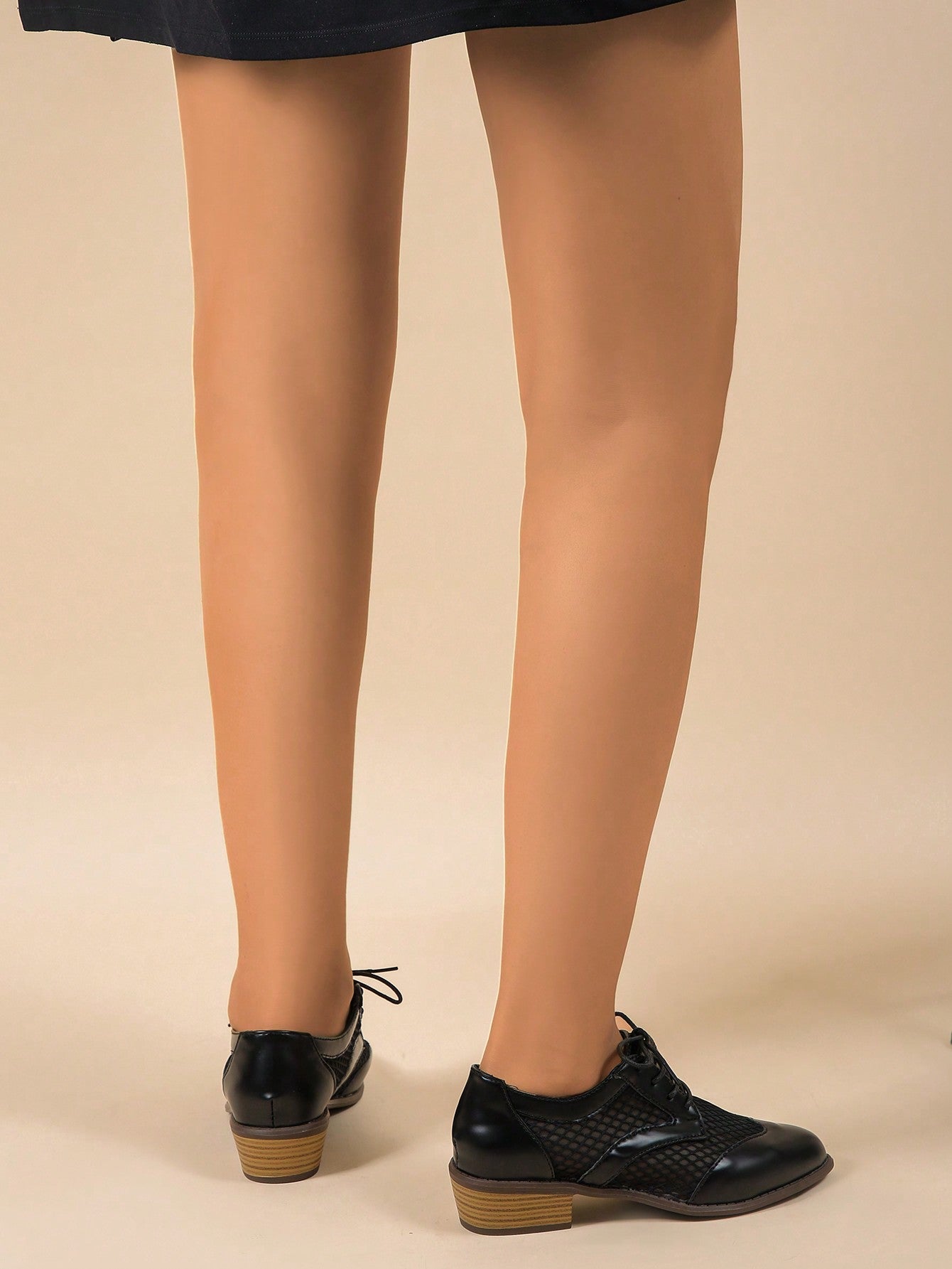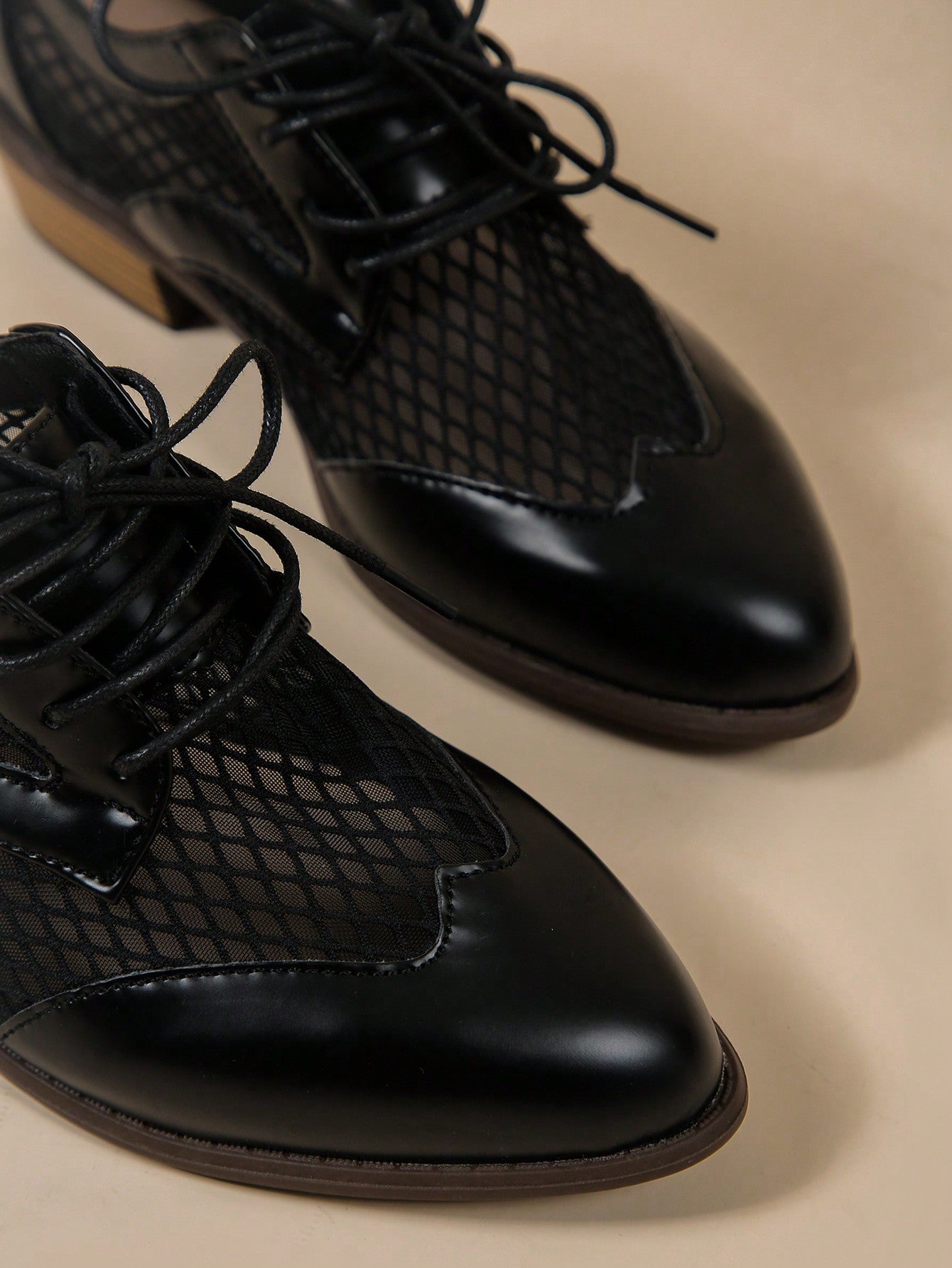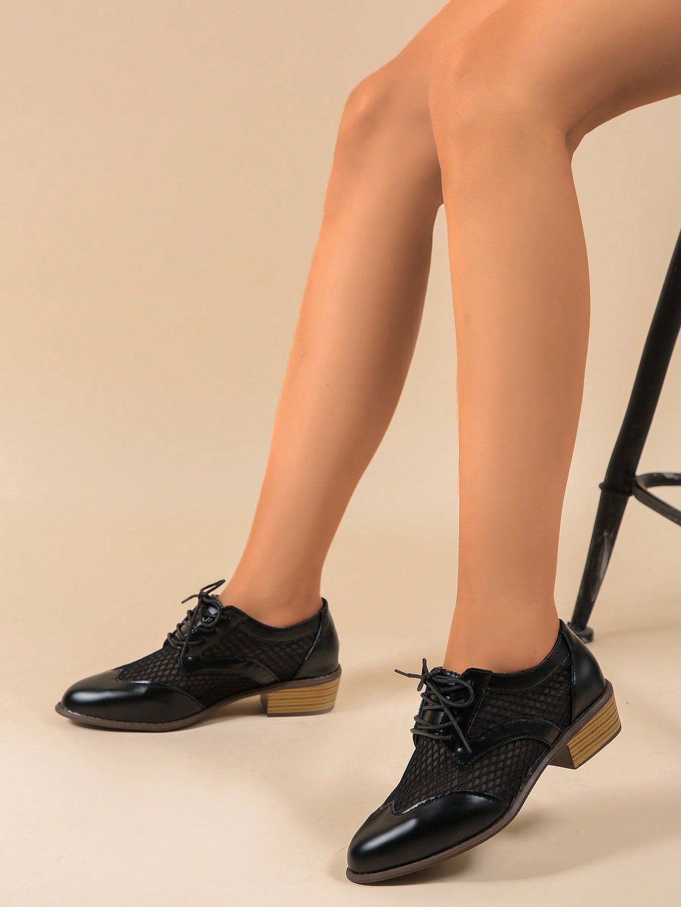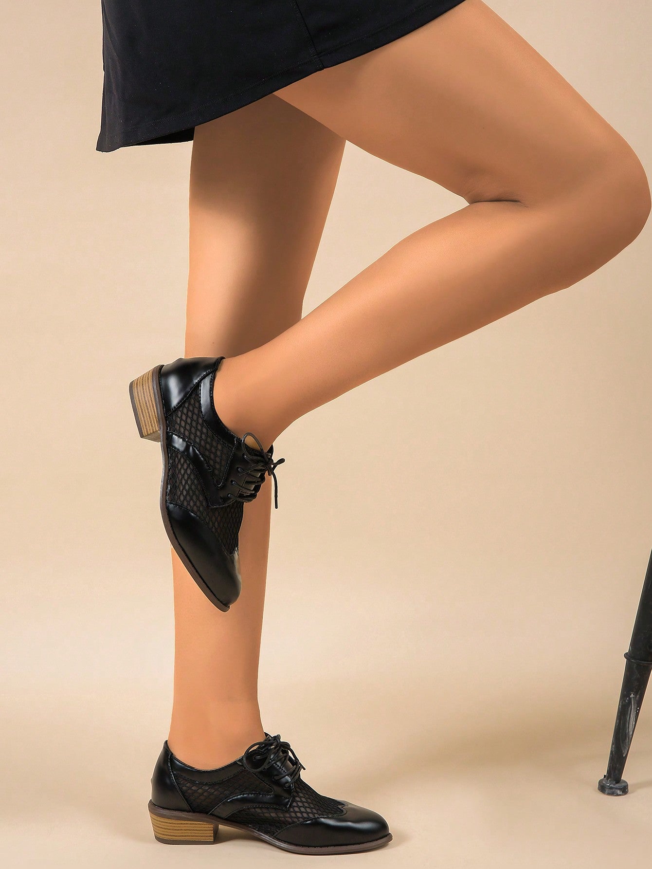Spring and Autumn New Trendy Pointed Toe Loafers - Breathable Mesh Hollow Out Shoes with Low Chunky Heels