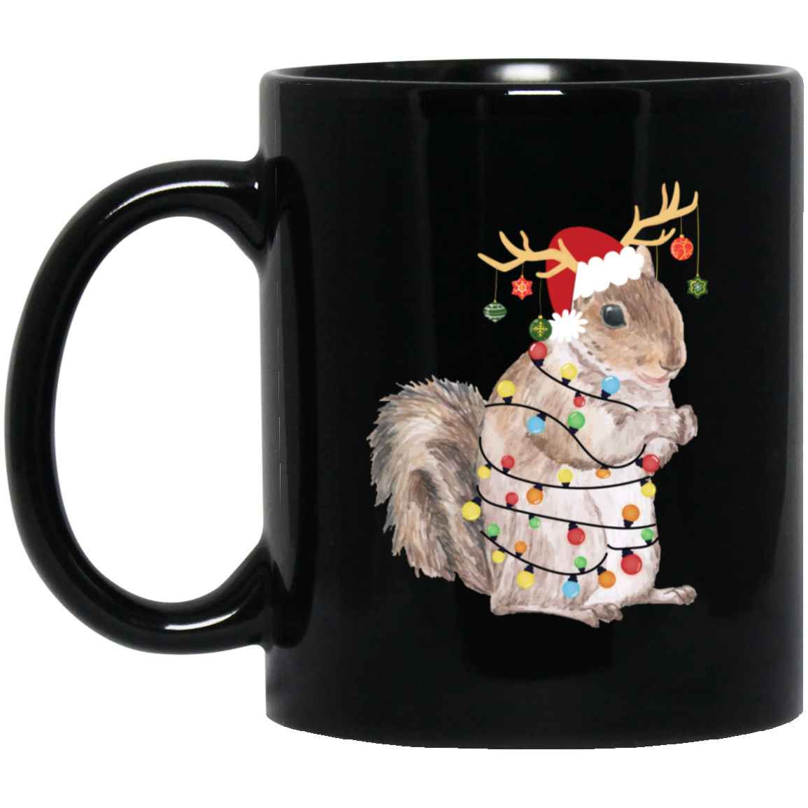 Squirrel Christmas, Merry Christmas, Christmas Lights, Funny Squirrel Black Mug