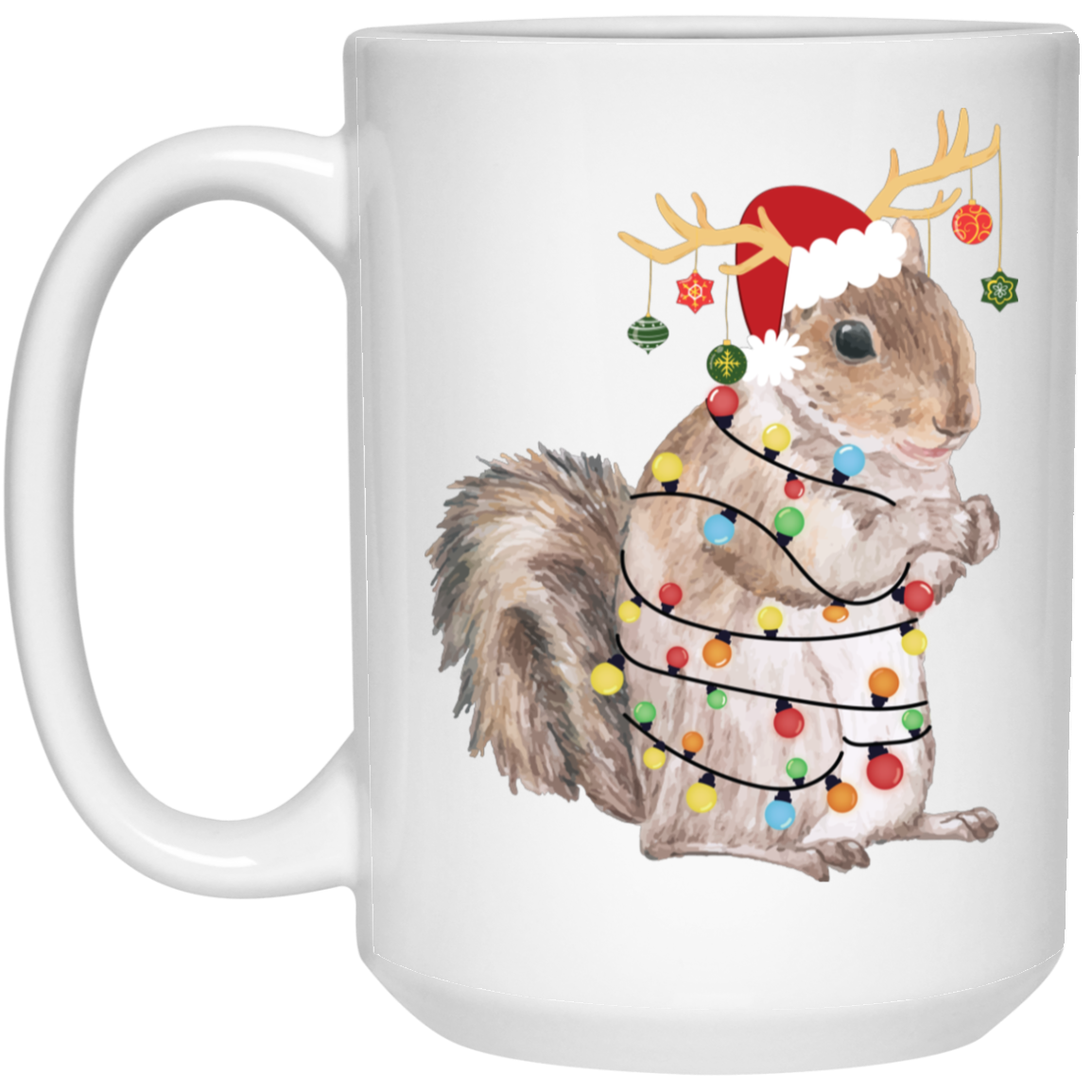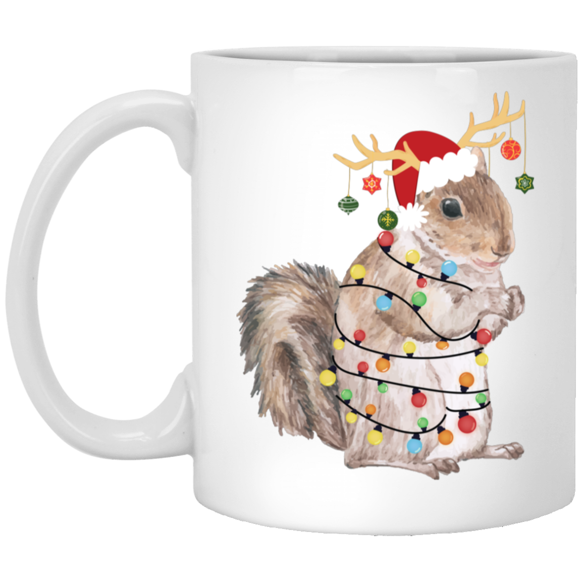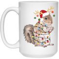Squirrel Christmas, Merry Christmas, Christmas Lights, Funny Squirrel White Mug