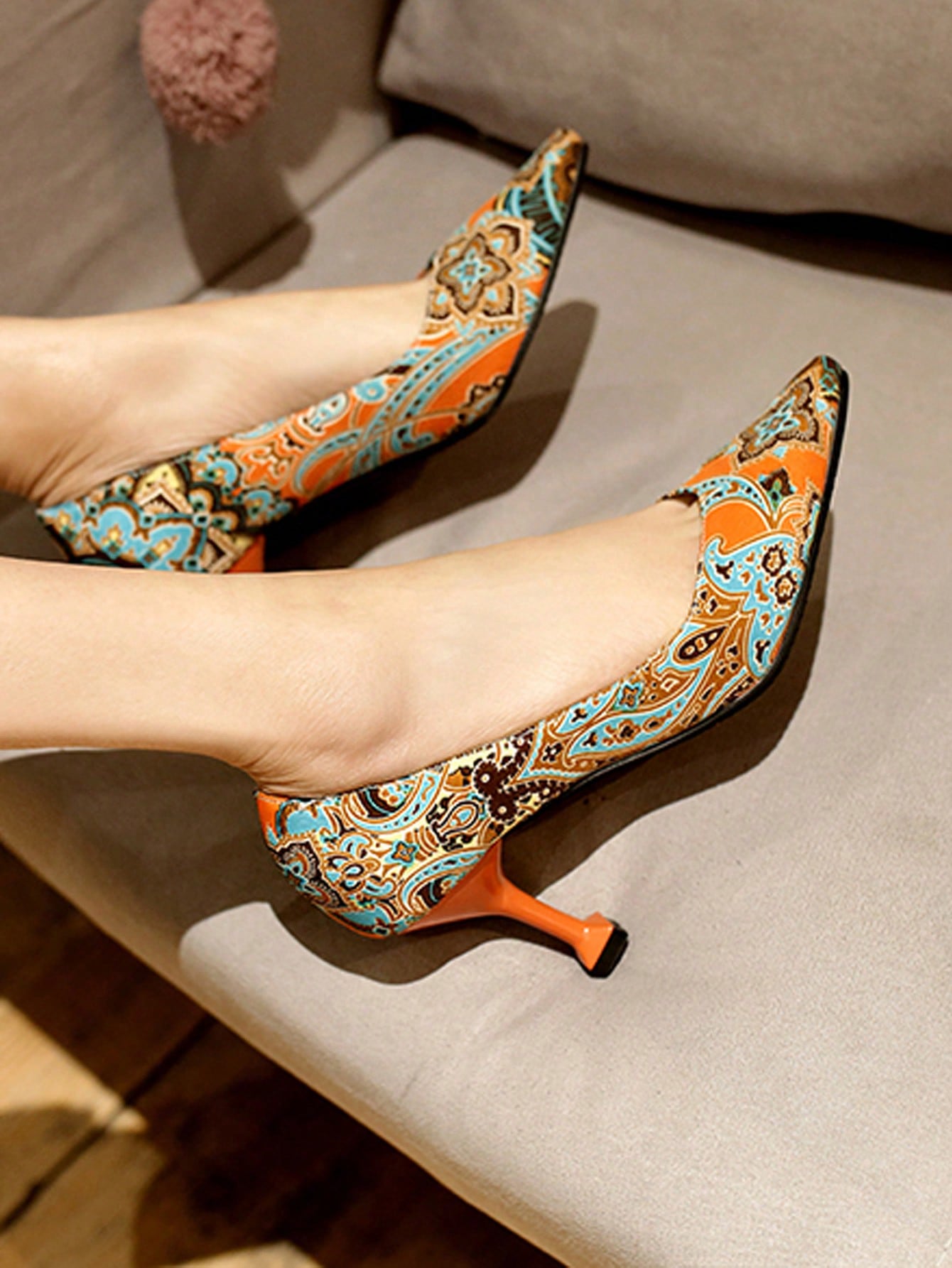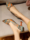 Statement Printed Pyramid Heeled Court Pumps for Fashionable Outdoor Style