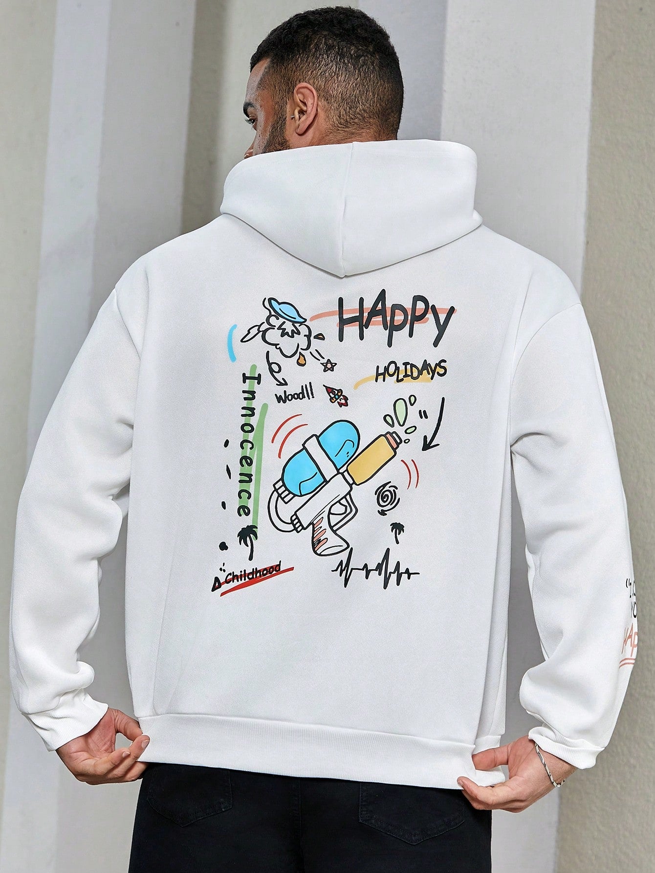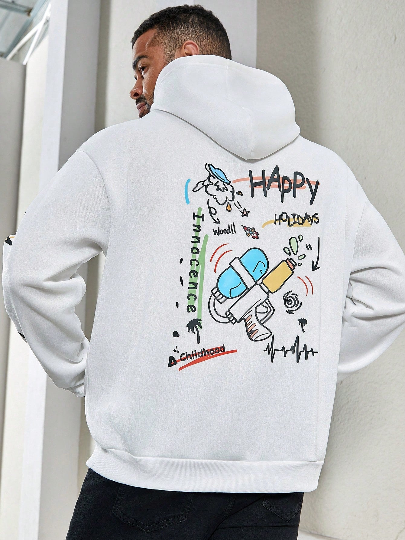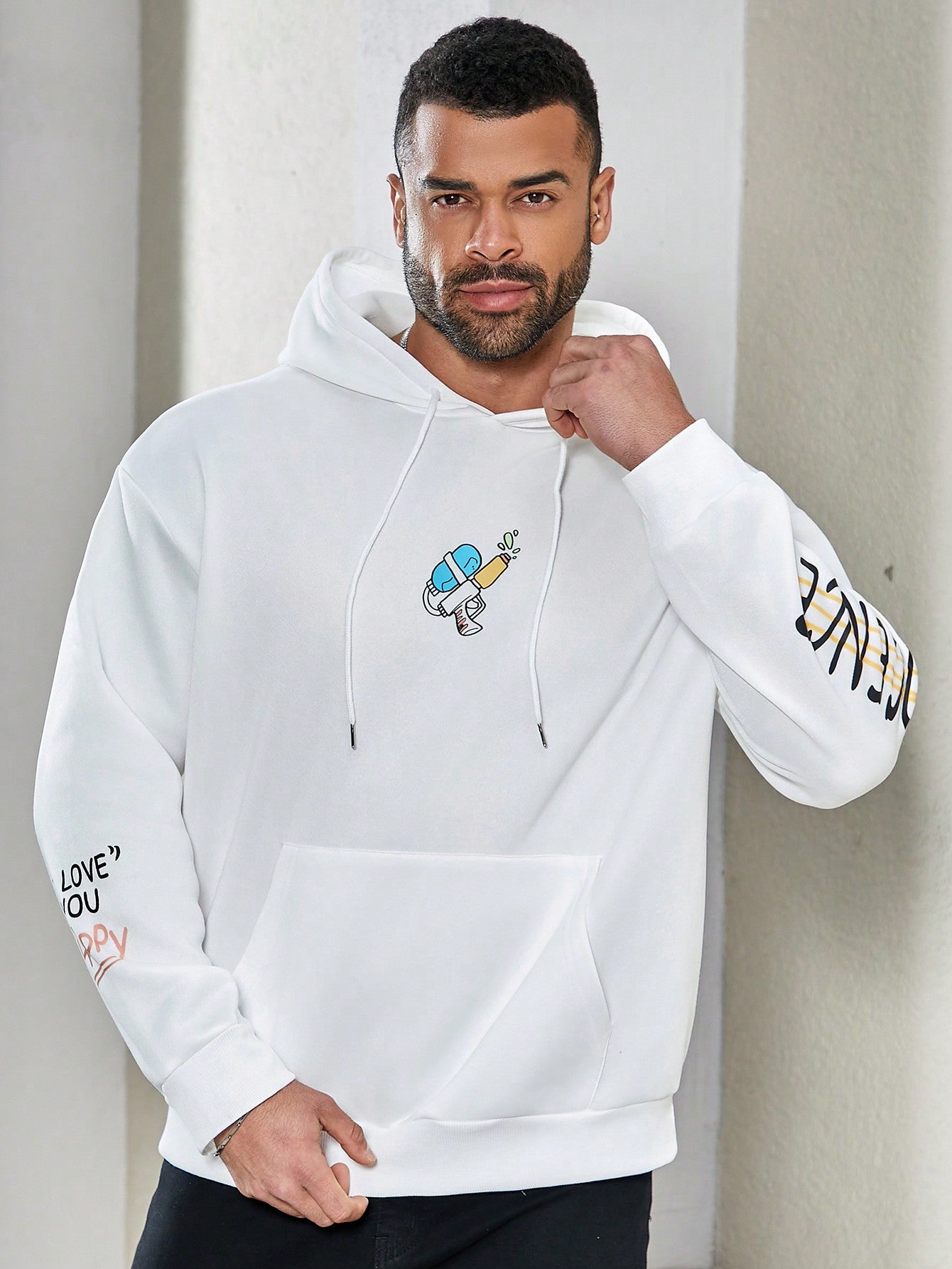 Stay Cool and Stylish with Men's Plus Size Water Gun Letter Print Drop Shoulder Hoodie