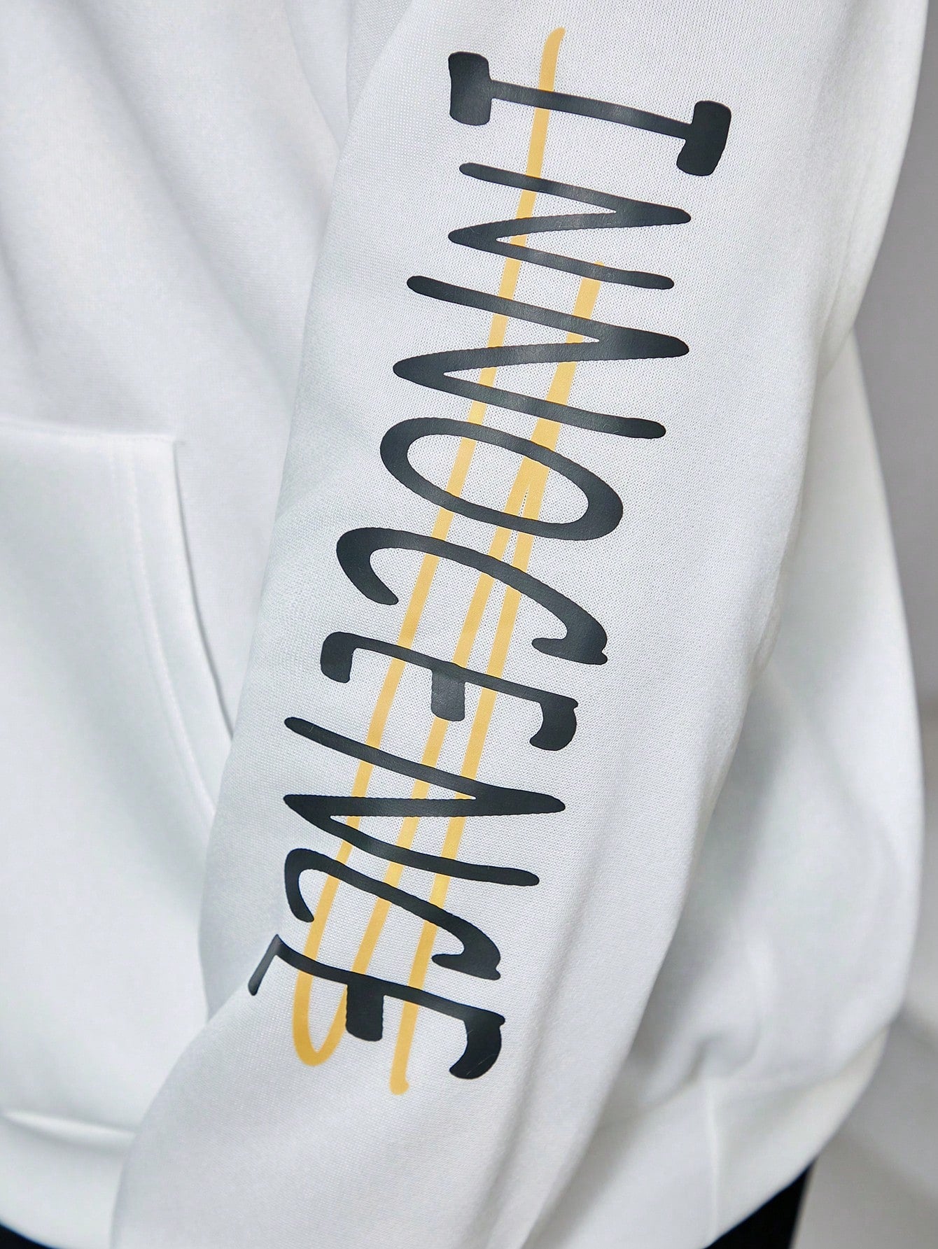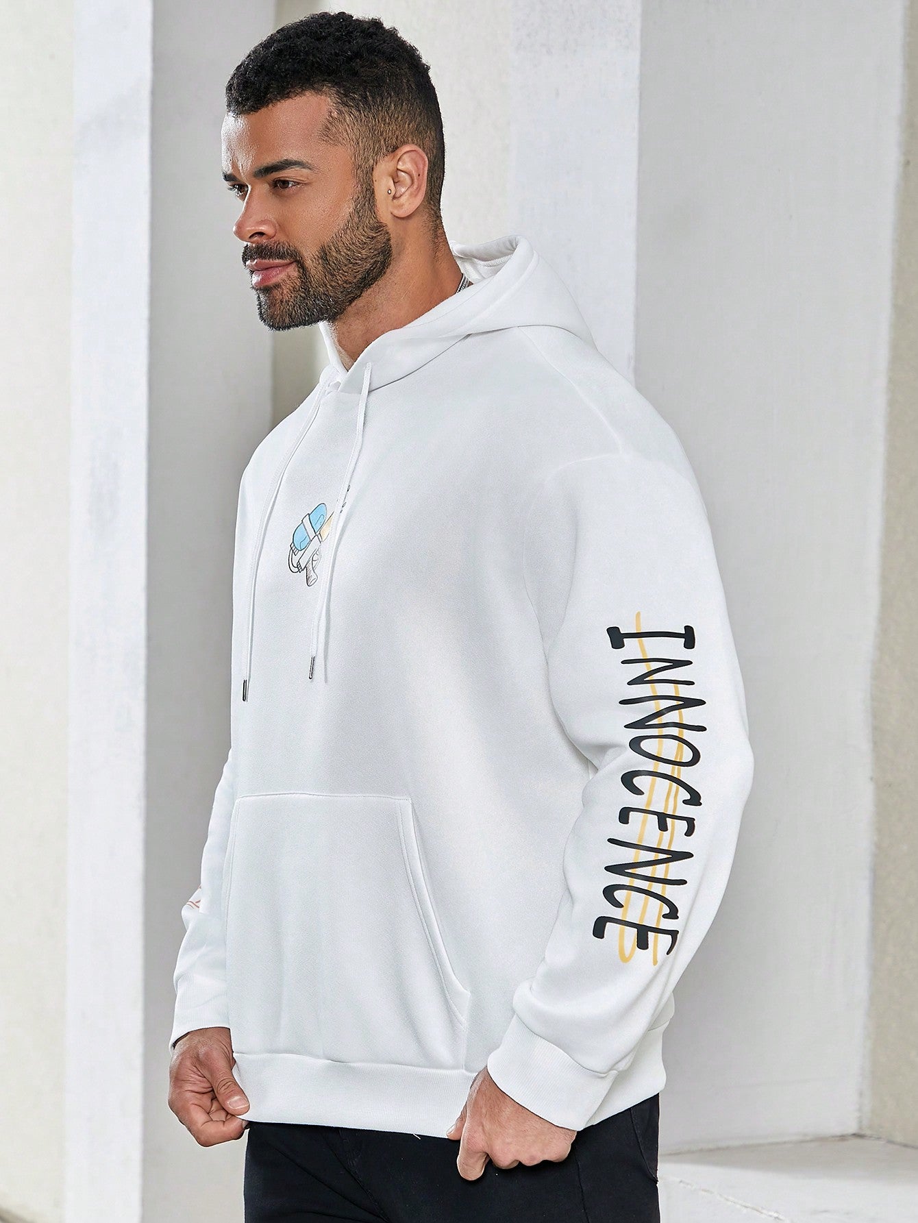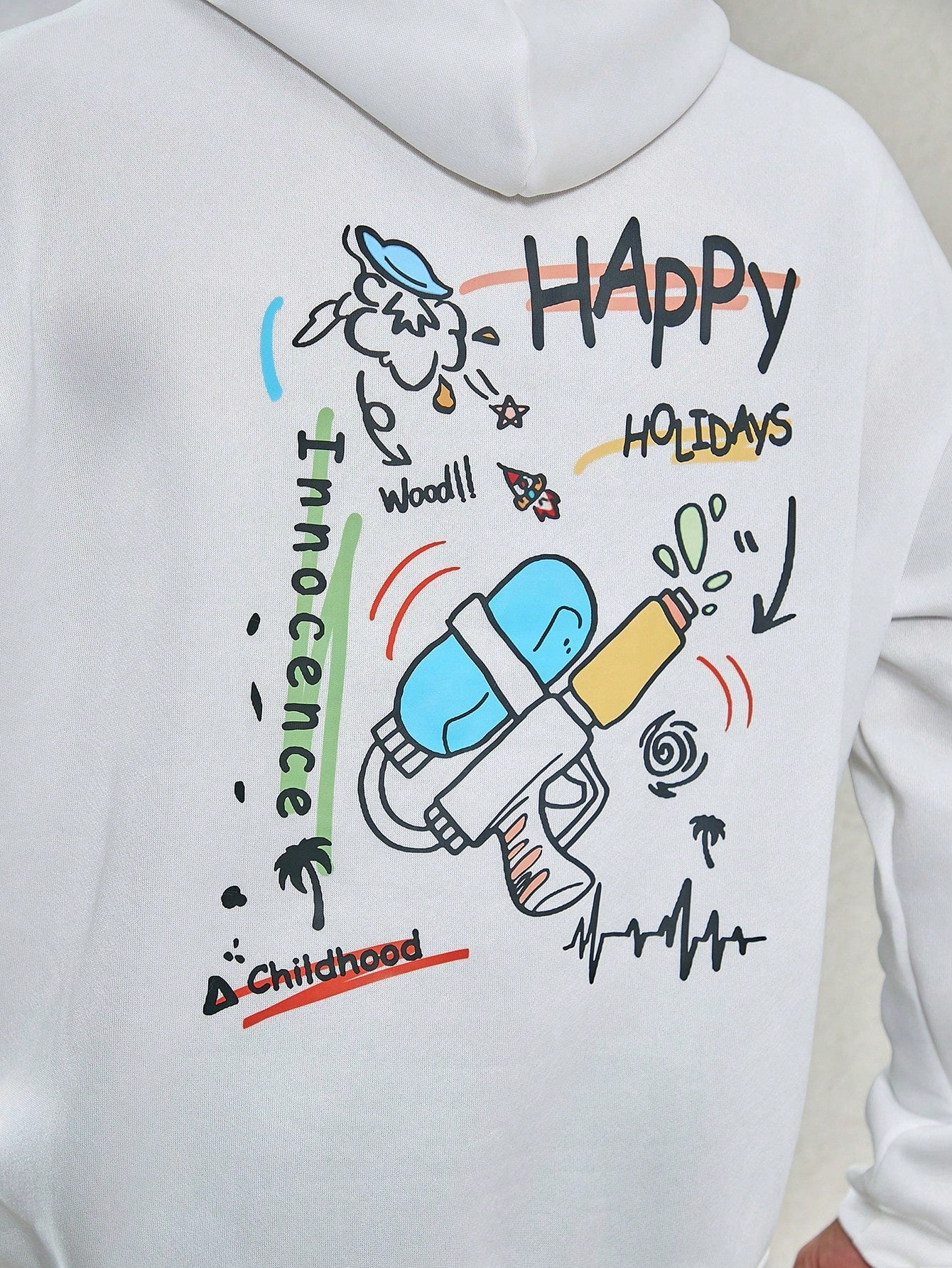 Stay Cool and Stylish with Men's Plus Size Water Gun Letter Print Drop Shoulder Hoodie