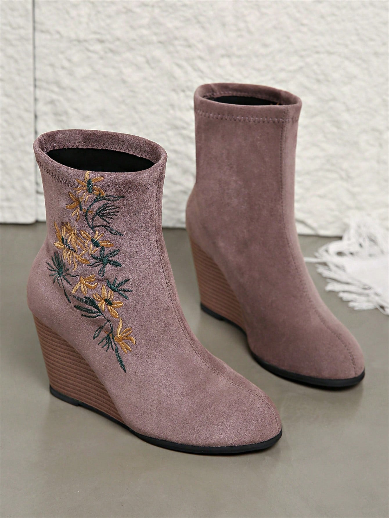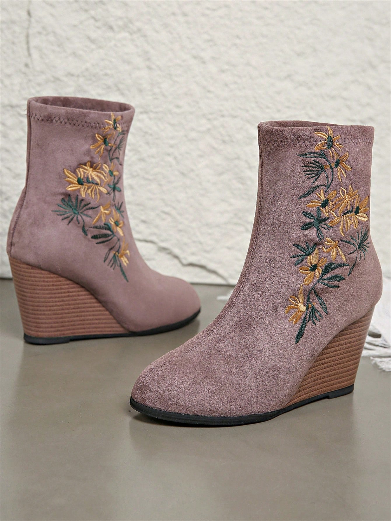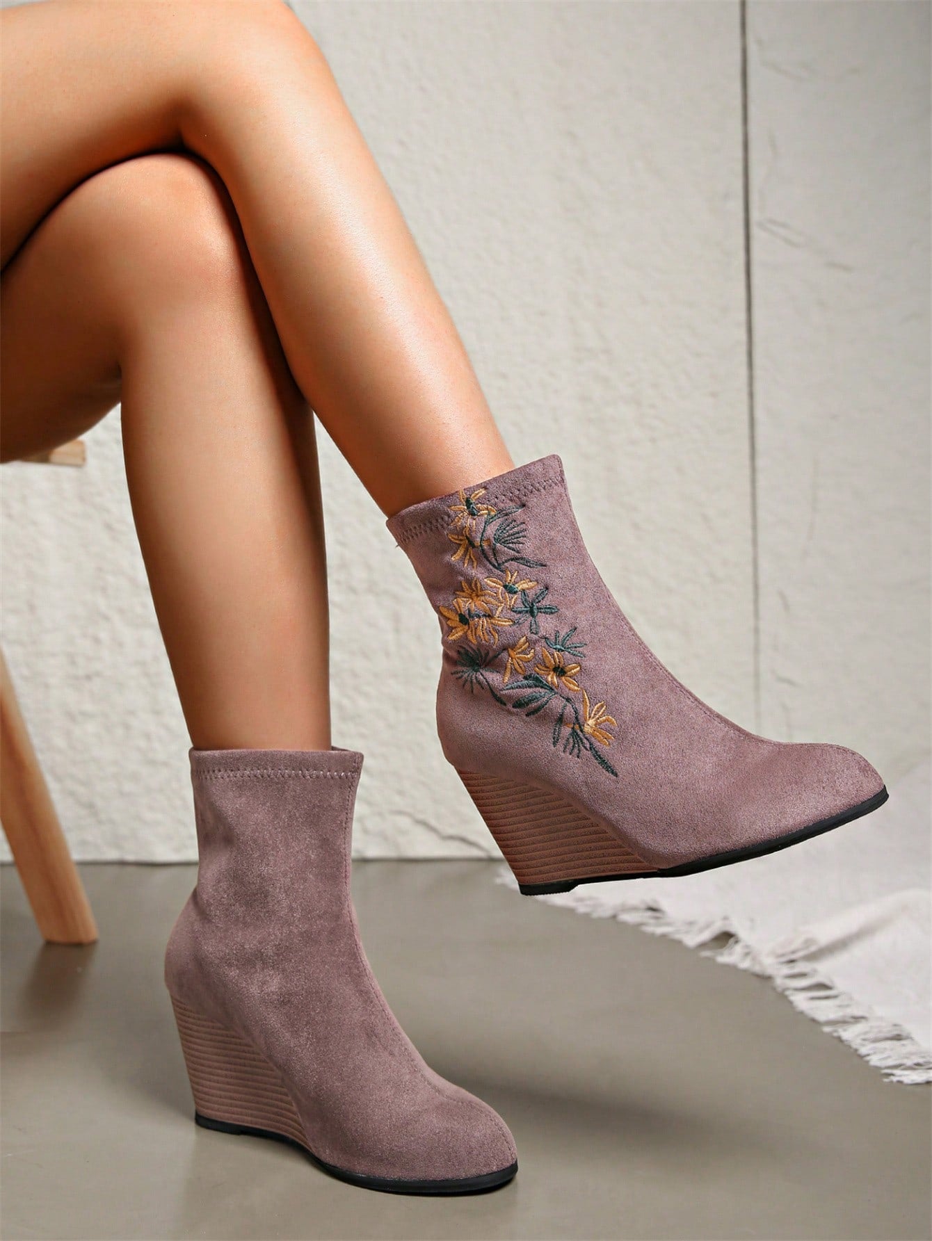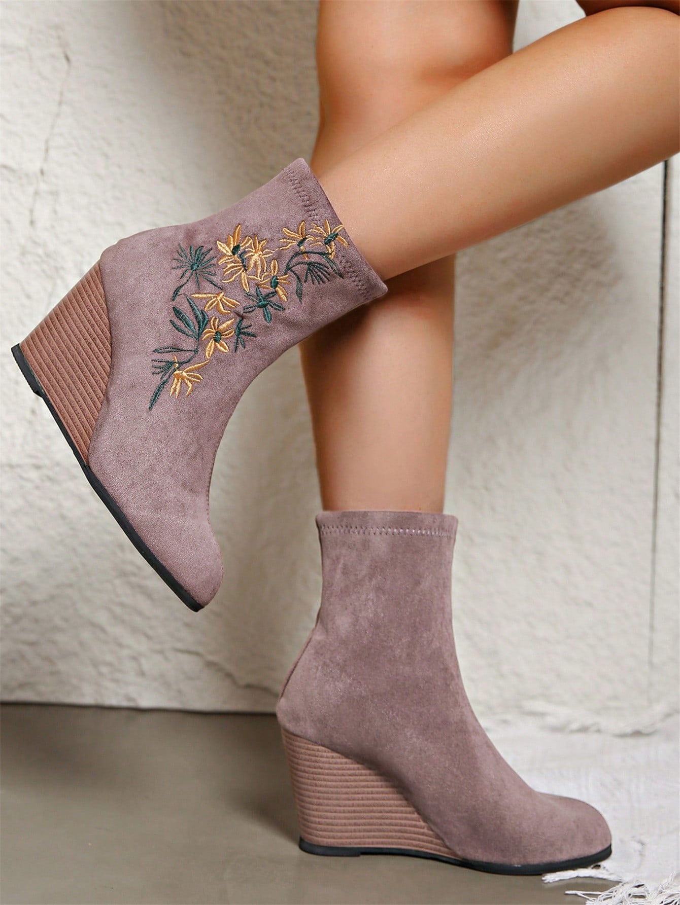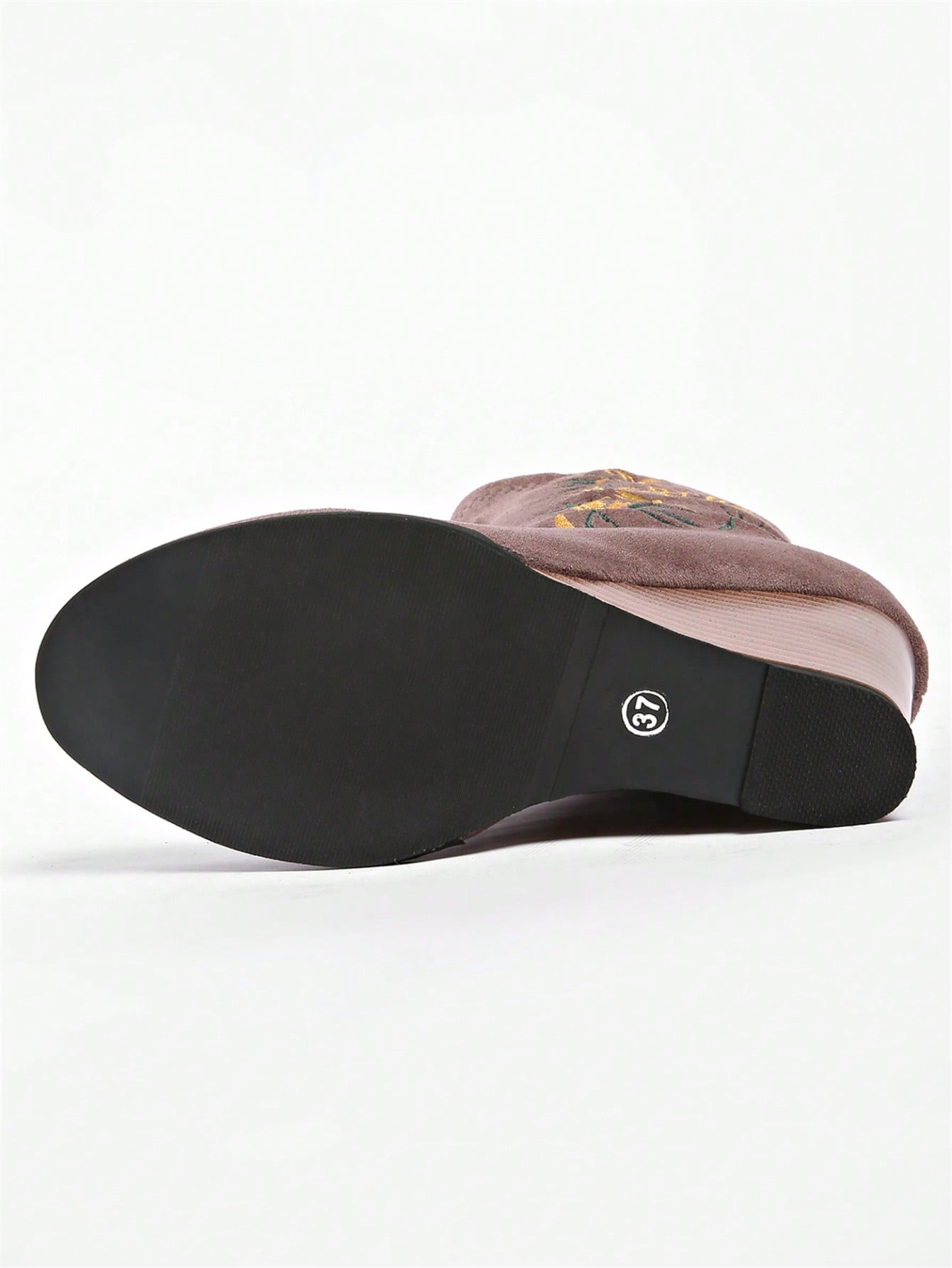 Step Out in Style: Embroidered Floral High-Heel Chunky Ankle Boots