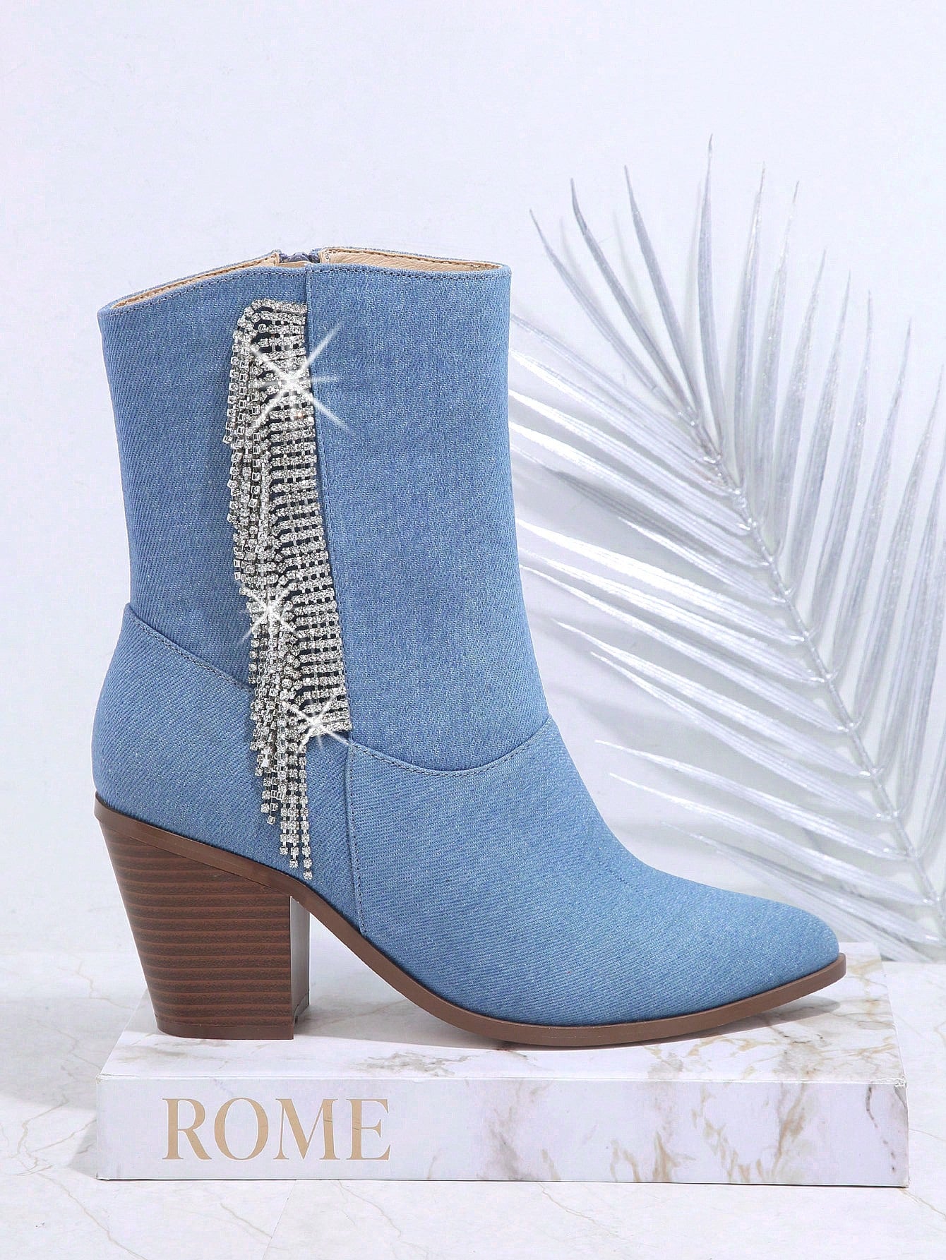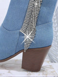 Step Out in Style with Glamorous Rhinestone Side Zipper Boots