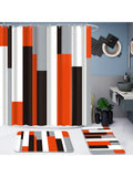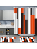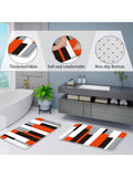 Striped Bathroom Shower Curtain Set with Non-Slip Bath Mats
