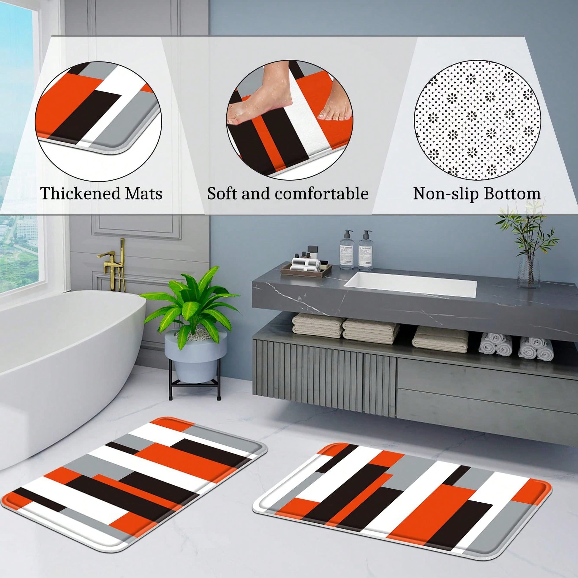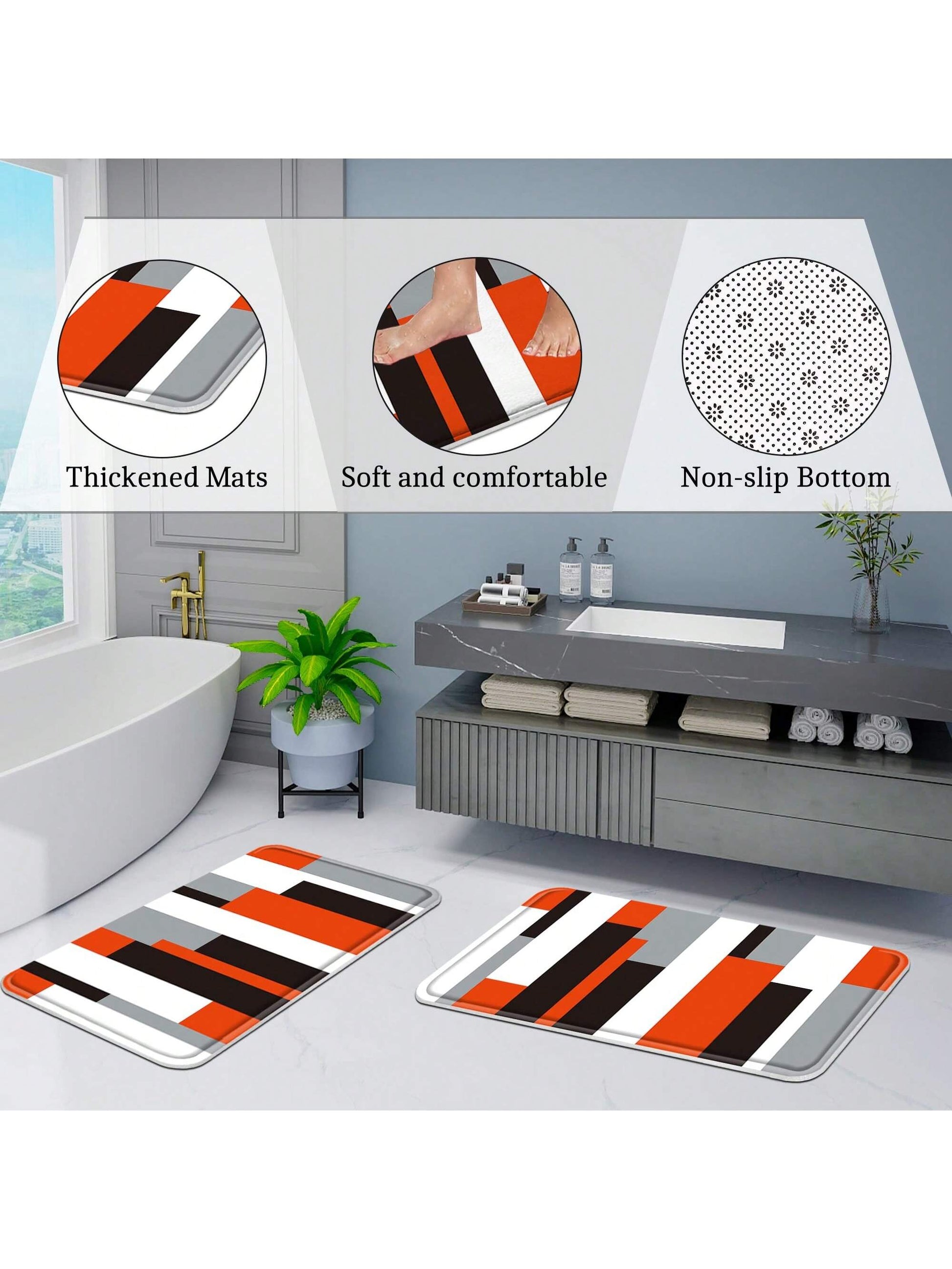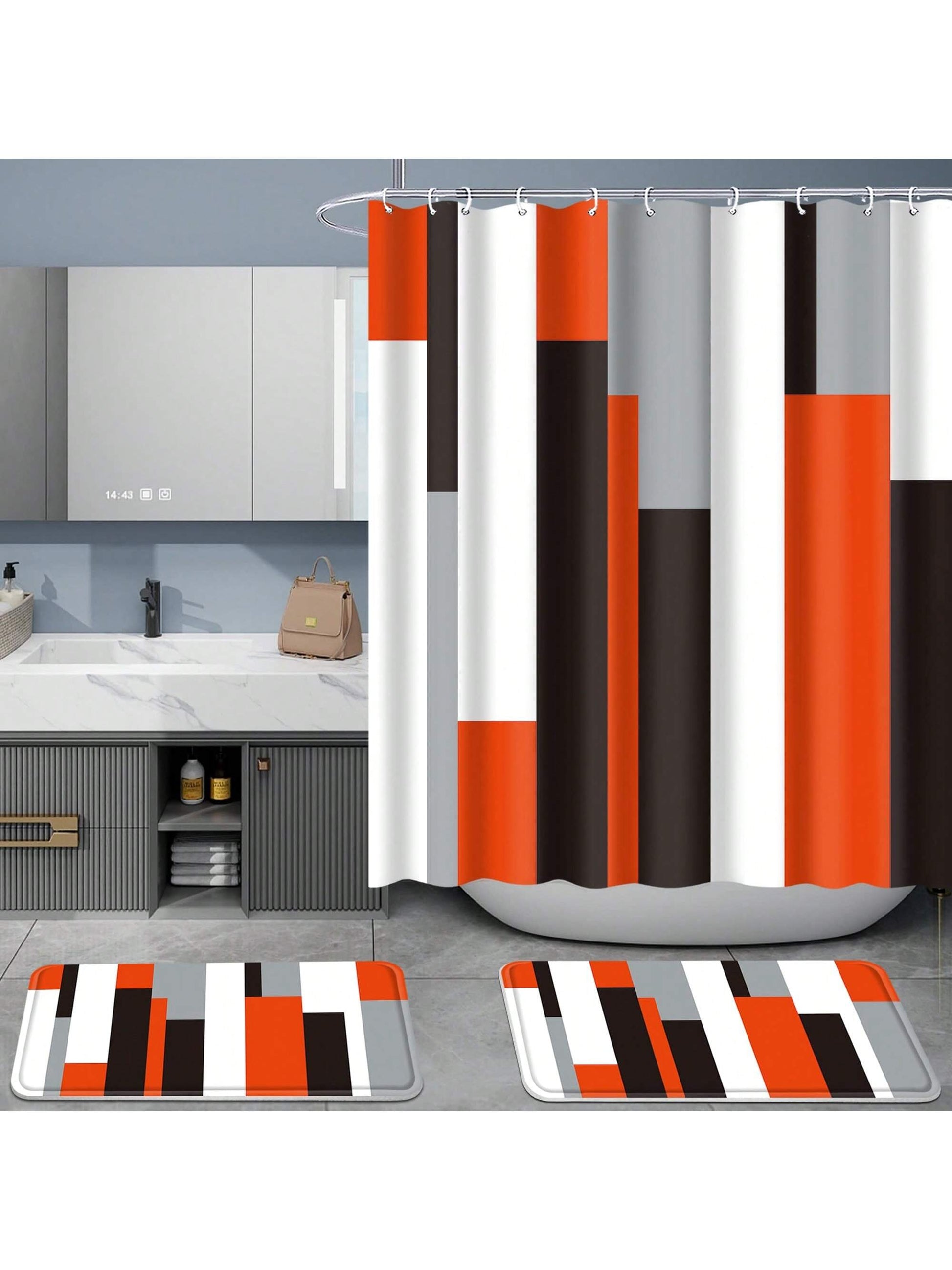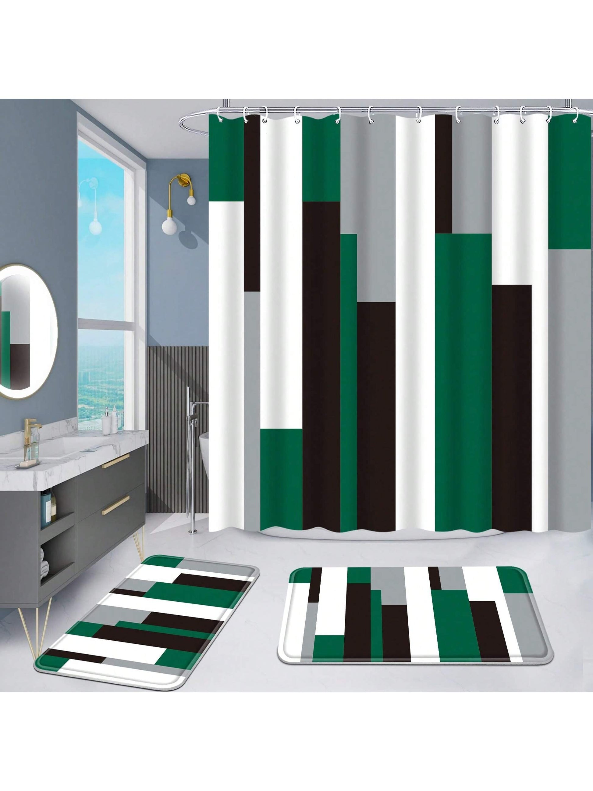 Shower Curtain Set, complete with Non-Slip Bath Mats. Enjoy the stylish design of the striped curtain while ensuring safety with the non-slip mats. Create a peaceful and functional bath experience with this essential set."