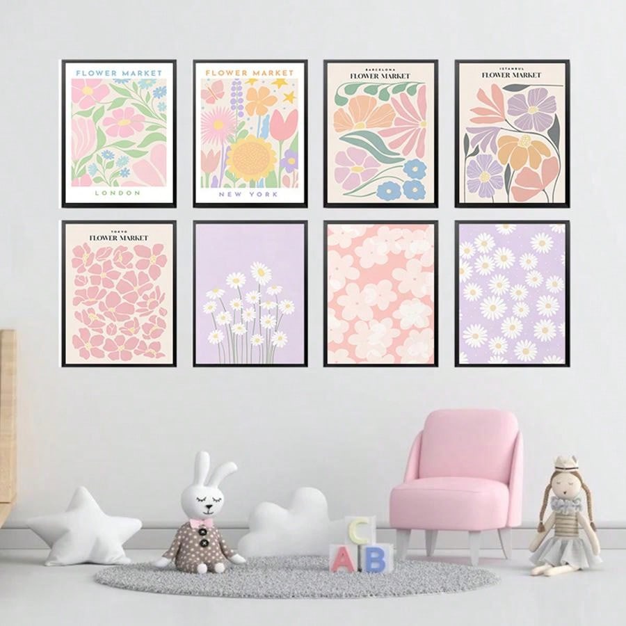 Stunning Flower Market Posters: Bring Nature Into Your Home or Office with This 8PCS Mural Art Collection