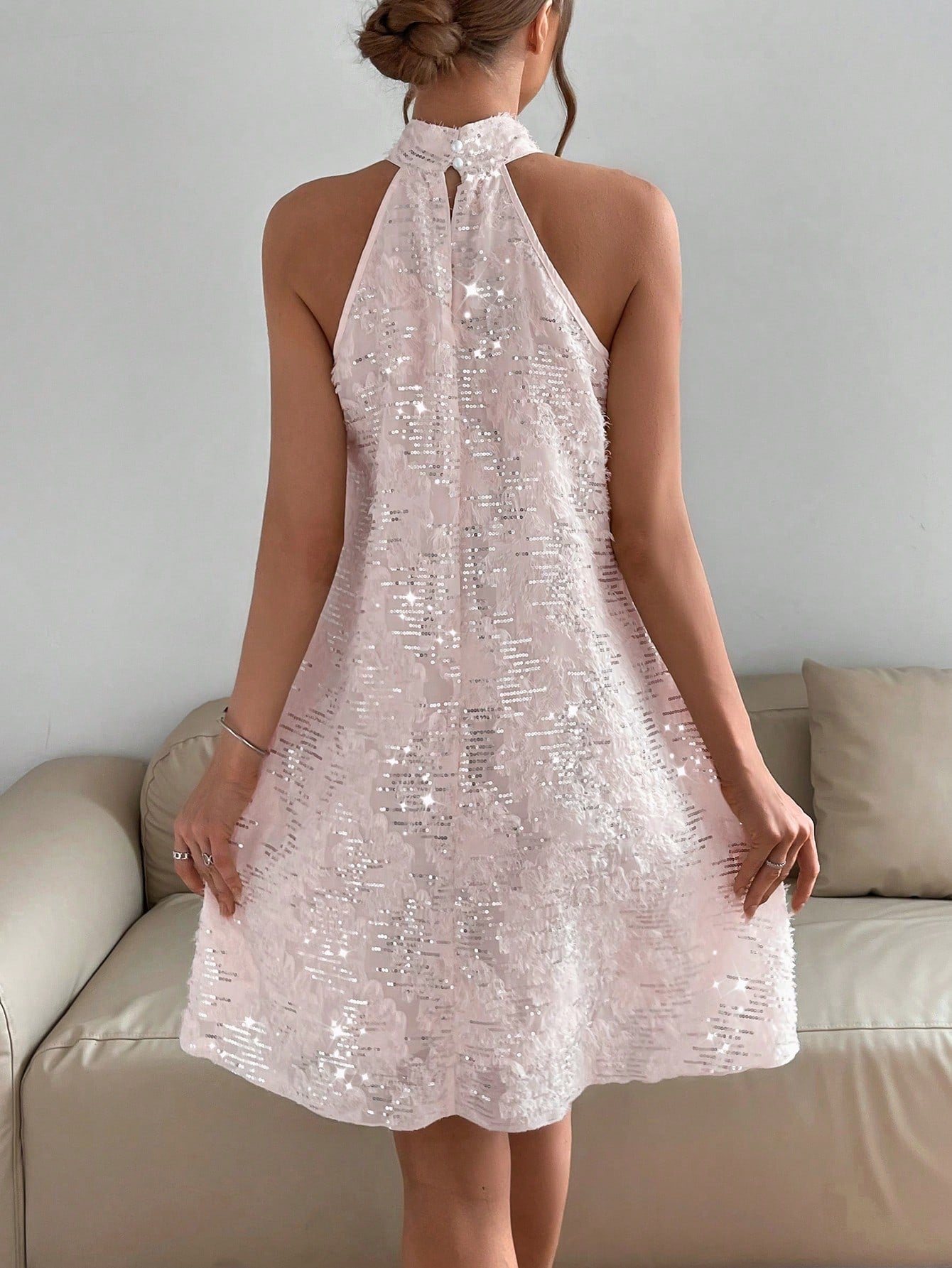 Stunning Solid Sequin Halter Dress: Embrace Unity in Style