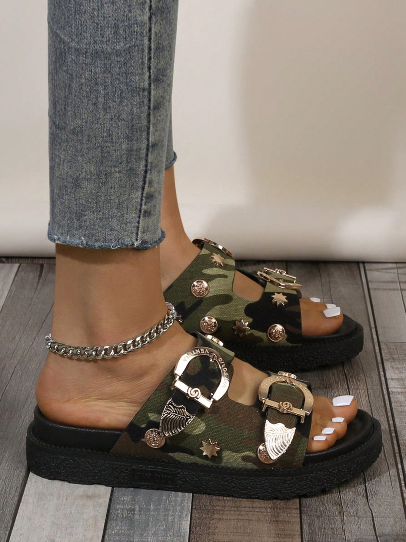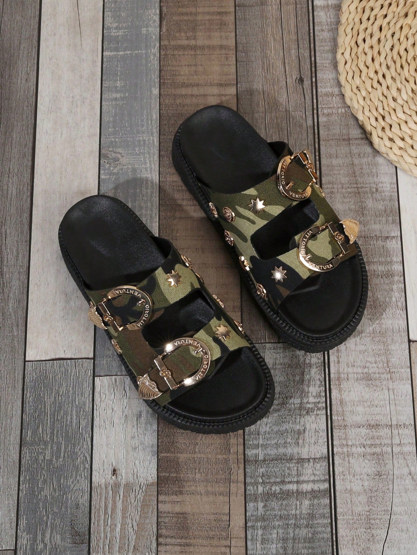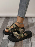 Stylish and Comfortable Round Toe Sandals with Gold Buckle Detail and Platform Wedge Heels